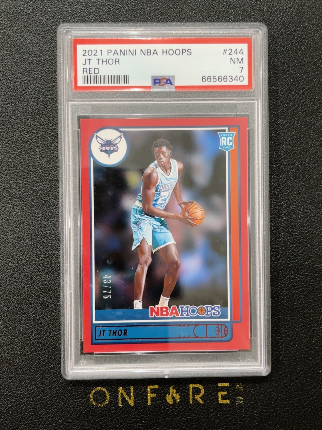 2021-22 Panini Hoops JT Thor RC 【0费率上火拍卖】JT索尔 新秀 Base 43/75编 红平行 PSA7 黄蜂 三球前队友 YX