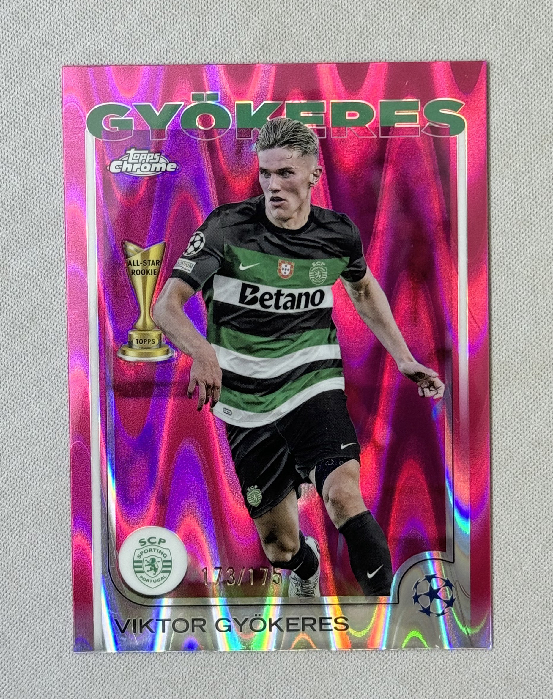 2024-25 Topps Chrome Viktor Gyokeres 维克托 哲凯赖什 瑞典🇸🇪布莱顿 葡萄牙体育 欧冠 TC 173/175编 霓虹粉波纹折 实卡精美 即将转会 卡品如图