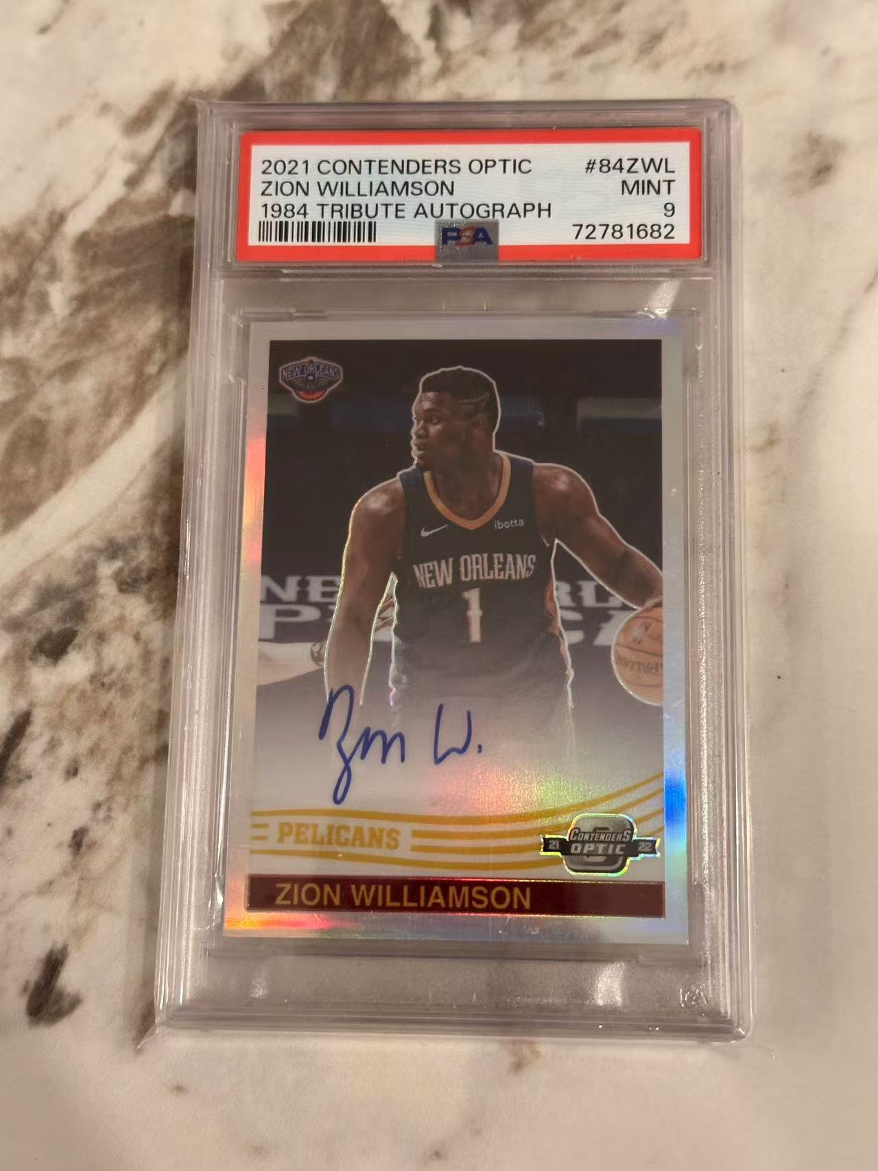 2021-22 Panini Contenders Optic Zion Williamson 锡安 威廉姆森 胖虎 鹈鹕 球票OP 签字 卡签 银折 PSA9分 评级卡