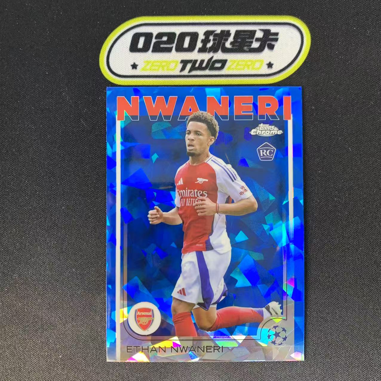 2024-25 Topps Chrome Ethan Nwaneri 欧冠蓝宝石 恩瓦内里 RC新秀 蓝碎冰折 base 阿森纳 微瑕如图 投资收藏必备(GZ01)