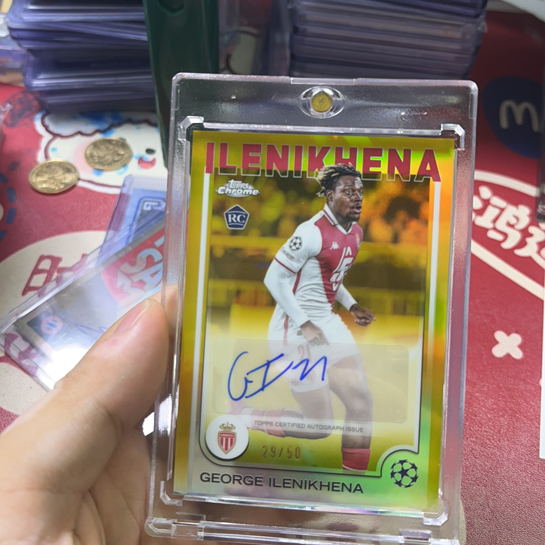 2025 Topps Chrome george ilenikhena 欧冠TC 新秀Rc版 摩纳哥妖人 伊莱尼赫纳 完美签字 限量29/50编 金折 尼日利亚 实卡精美 微瑕 投资收藏必备