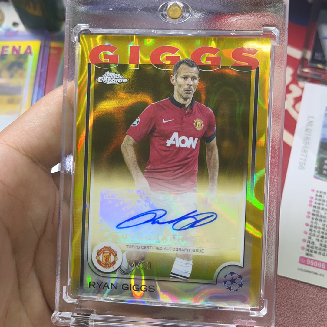 2025 Topps Chrome Ryan Giggs 欧冠TC 王老吉 曼联传奇 吉格斯 完美签字 限量14/50编 变化版 金波纹折 出道时期同背编 威尔士 实卡精美 微瑕 投资收藏必备