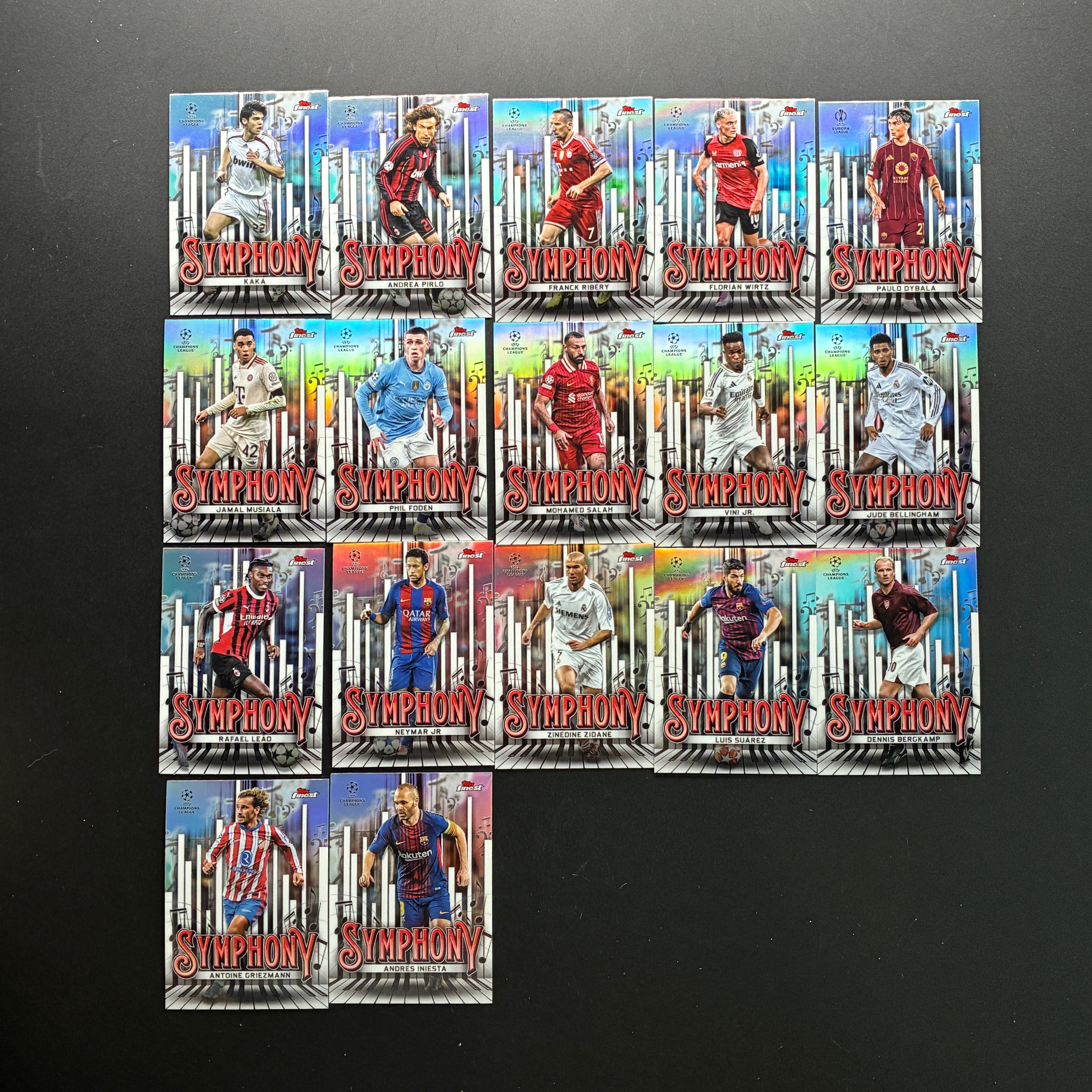 【Jackie杰基】2025 Topps Finest 欧冠 内马尔 萨拉赫 贝林厄姆 福登 卡卡 穆夏拉 博格坎普 苏亚雷斯 齐达内 维尼修斯 等 交响乐特卡 银折18张 不保卡品 (蝴蝶)