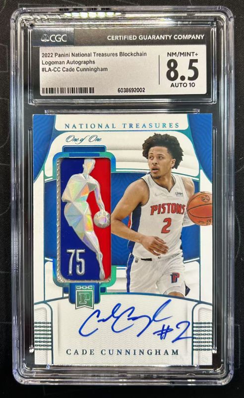 2022-23 Panini National Treasures Cade Cunningham 【顾大白代卖】国宝 凯德 坎宁安 CC 活塞 签字 卡签 logoman 湖水蓝闪 1/1编 LA