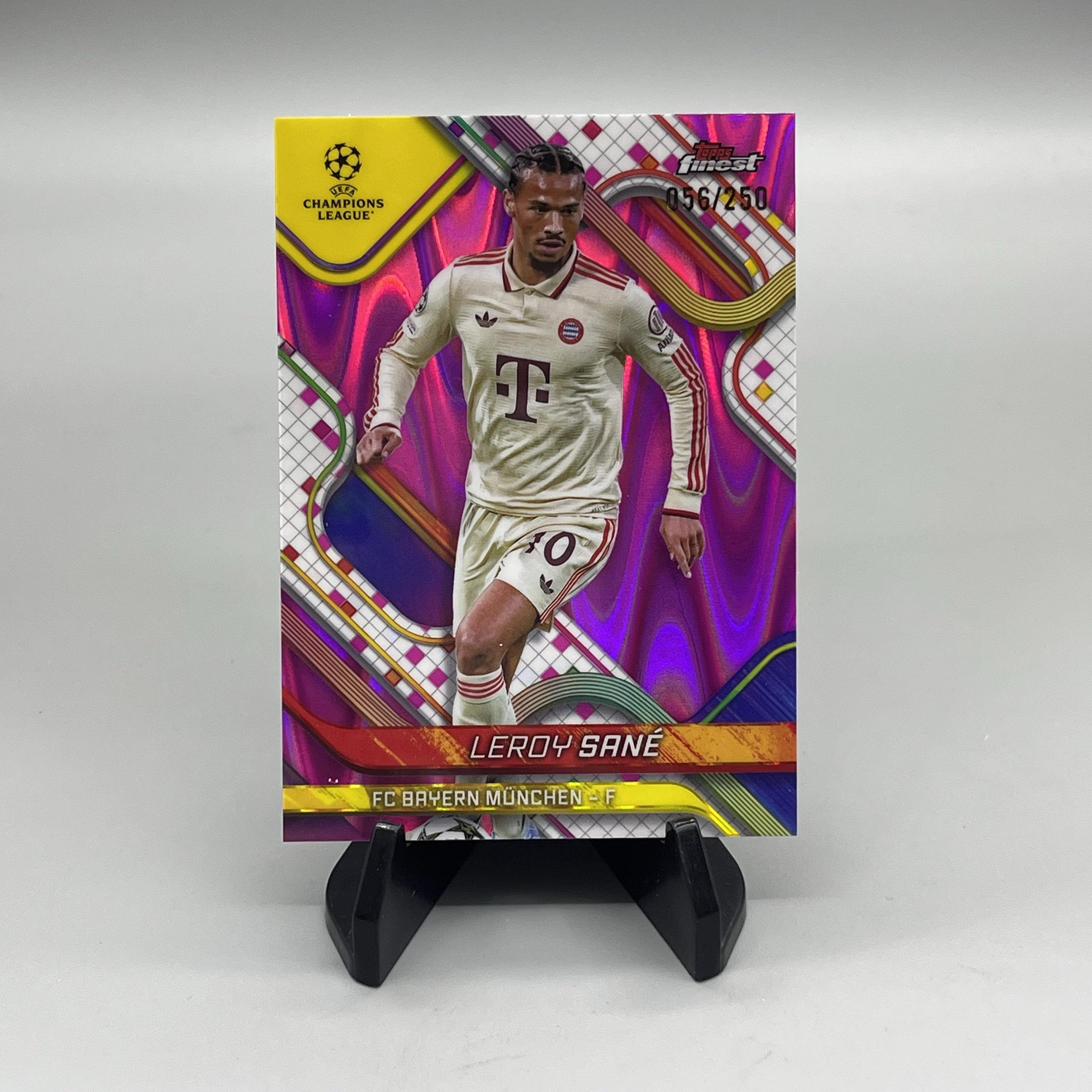 2024-25 Topps Finest Leroy Sané 欧冠欧战 萨内 拜仁慕尼黑 056/250编 粉熔岩折 收藏必备 微瑕 卡品如图 黑白【UD拍卖】