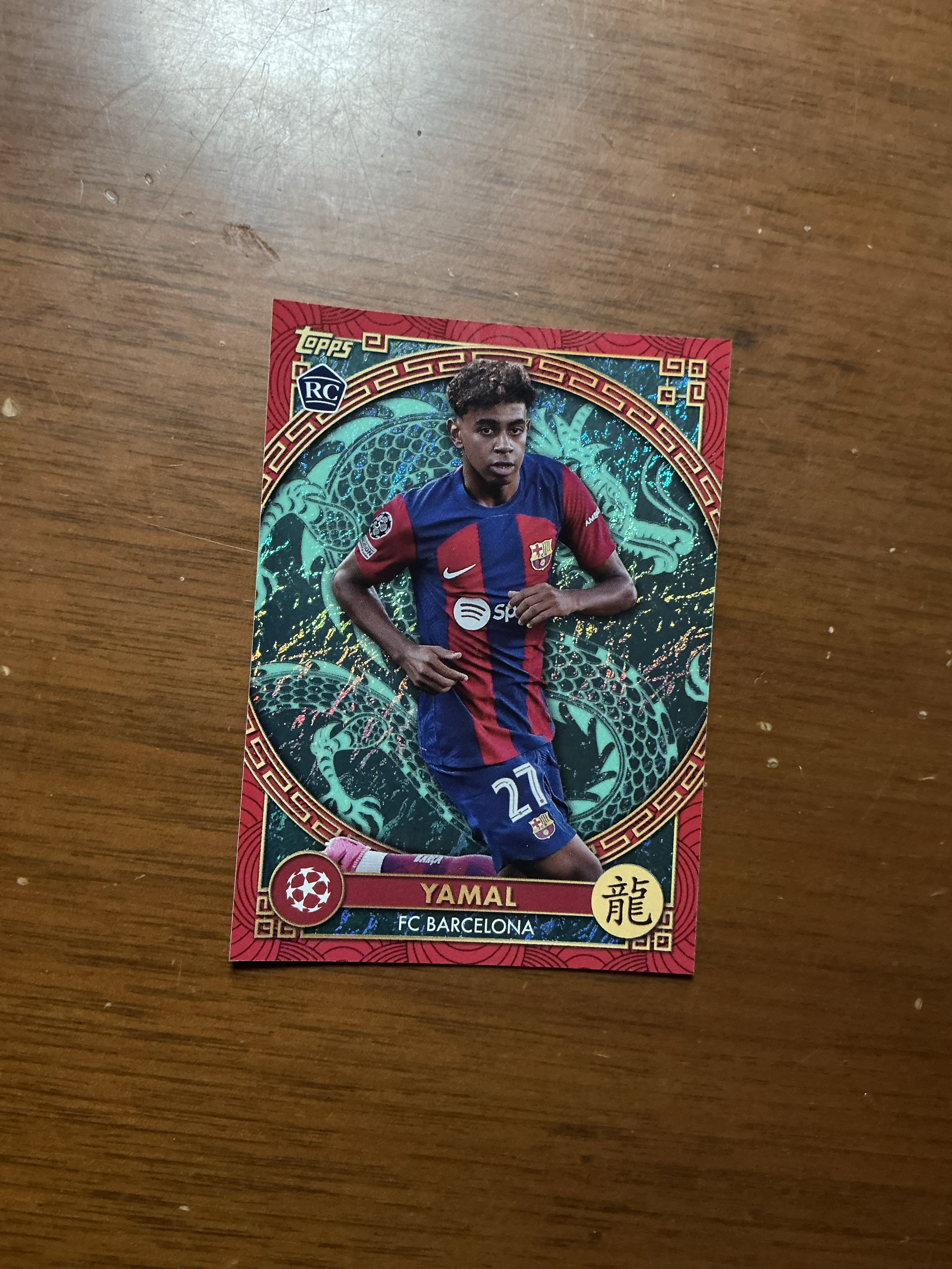 2023-24 Topps UCC 欧战 龙年碧玉 Lamine Yamal 亚马尔 新秀 RC 龙年特卡 折射 巴塞罗那 巴萨 卡品如图