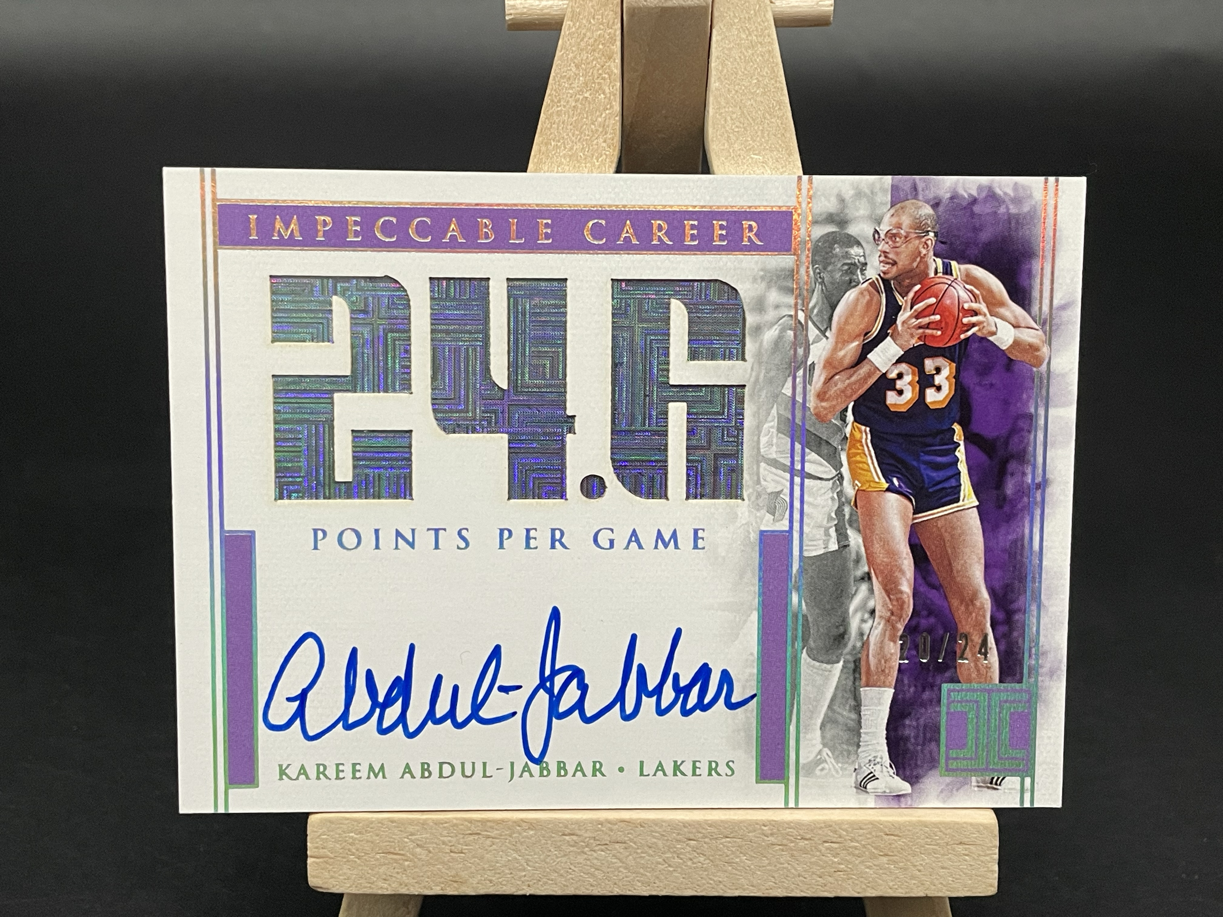 2019-20 Panini Impeccable Kareem Abdul-Jabbar 【白鸟代卖 寄付特快】小真金 数据签 湖人 天钩 贾巴尔 /24编签字 卡签 微瑕如图 花开
