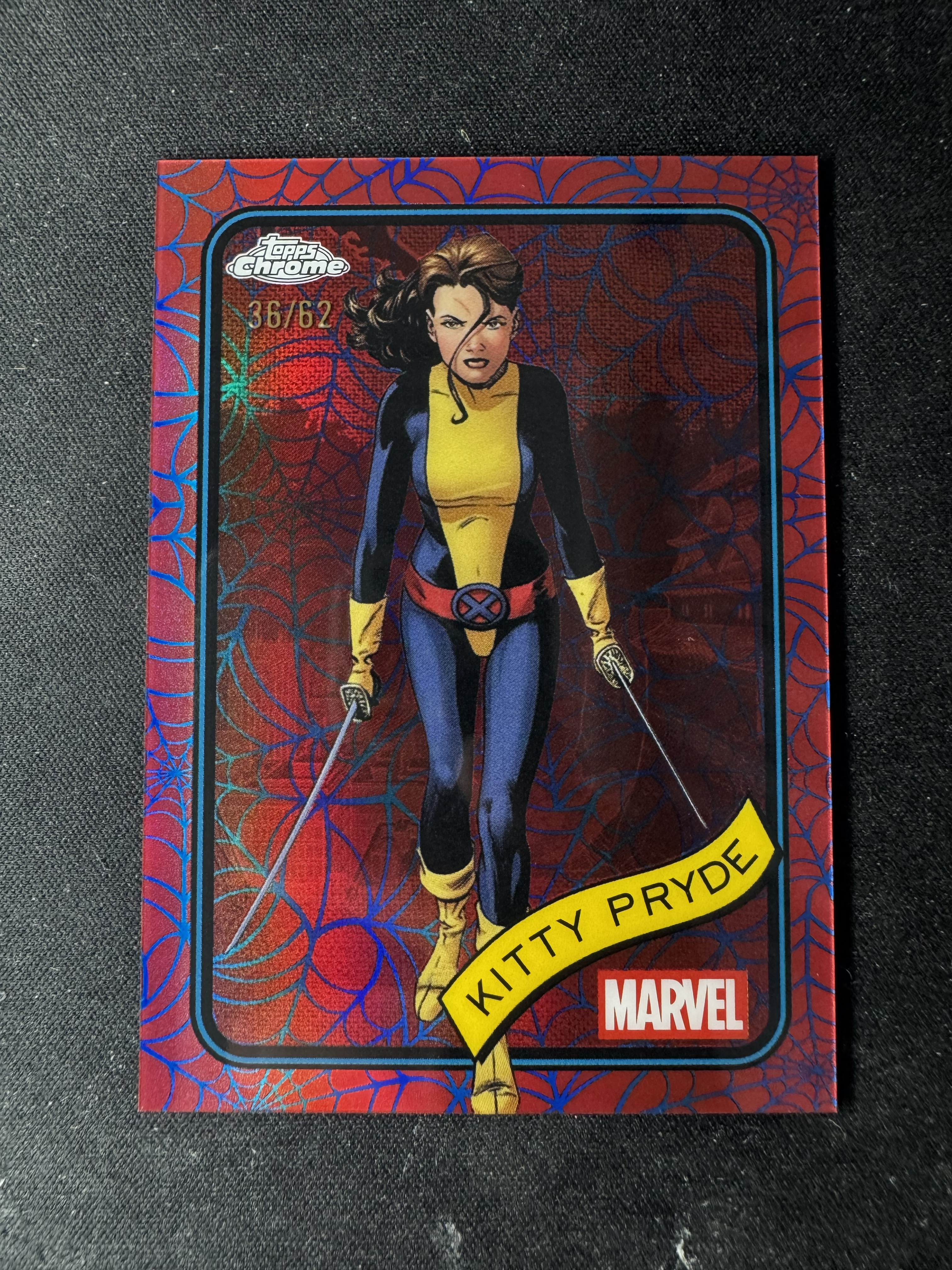 2025 Topps Marvel (MCU) Chrome 【科科 尤因】漫威 TC Kitty Pryde 凯蒂 普莱德 幻影猫 /62编 红蛛网折 SSP X战警核心人物 好人好卡 卡品如图