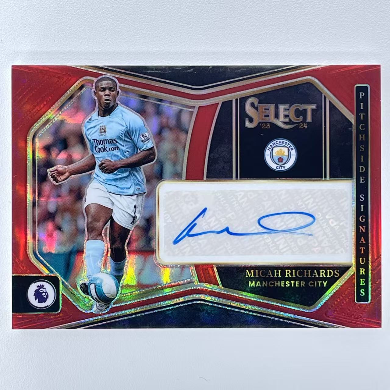 E 2023-24 Panini Select Micah Richards 米卡 理查斯 理查兹 英格兰 曼城 英超 签字 签名 场边签 红折 折射 Pitchside Signature 轻印如图 初七#
