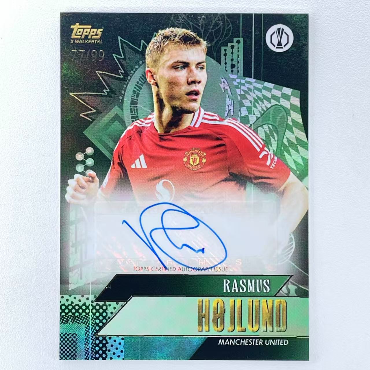 E 2024-25 Topps Gold Rasmus Hojlund 拉斯穆斯 霍伊伦德 99编 绿折 折射 签字 签名 曼联 丹麦 欧冠 黄金盒 轻印如图 初七#