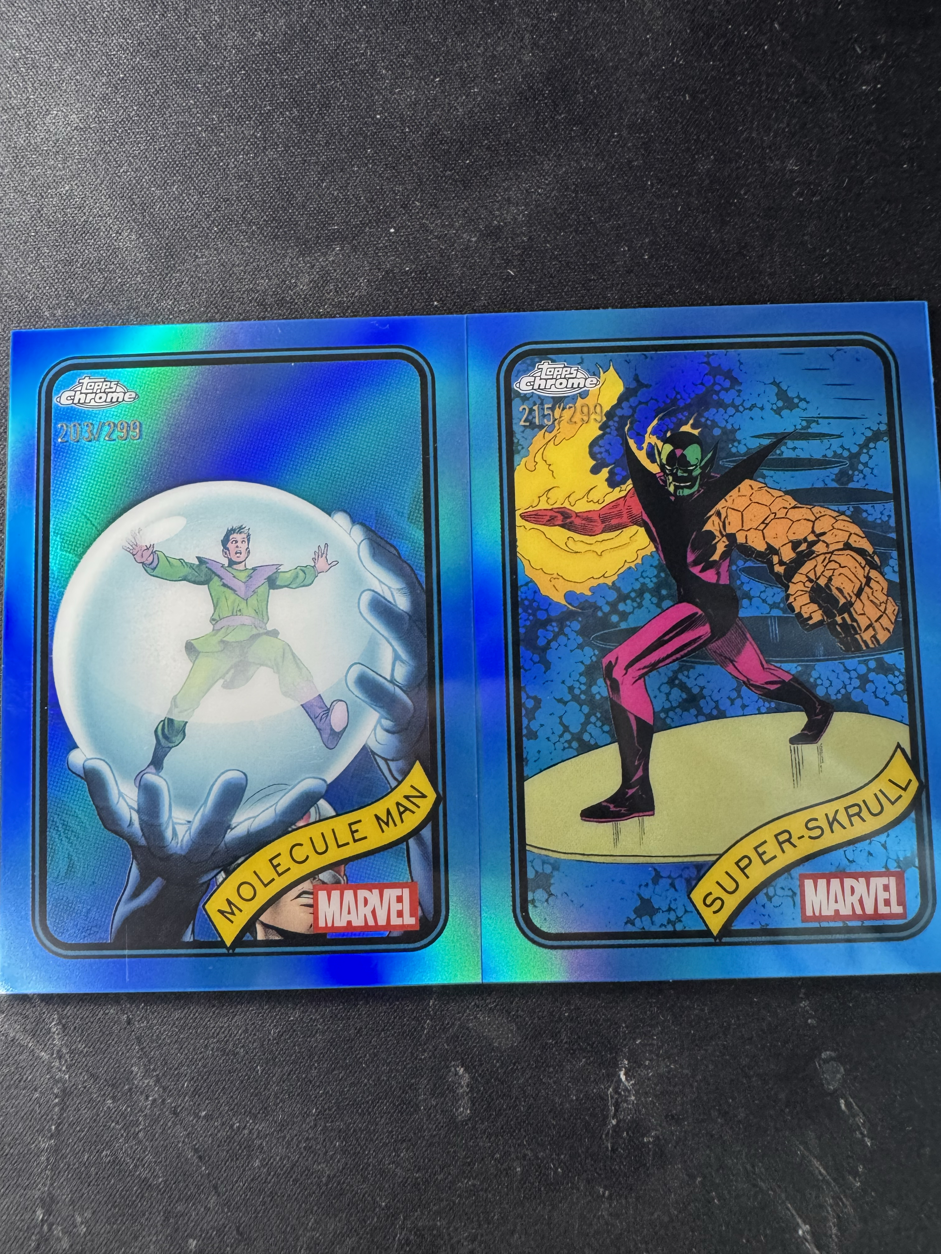 2025 Topps Marvel (MCU) chrome 【科科 尤因】漫威TC Molecule Man 分子人 Super-Skrull 超级斯克鲁人 蓝折 /299编 打包 卡品如图