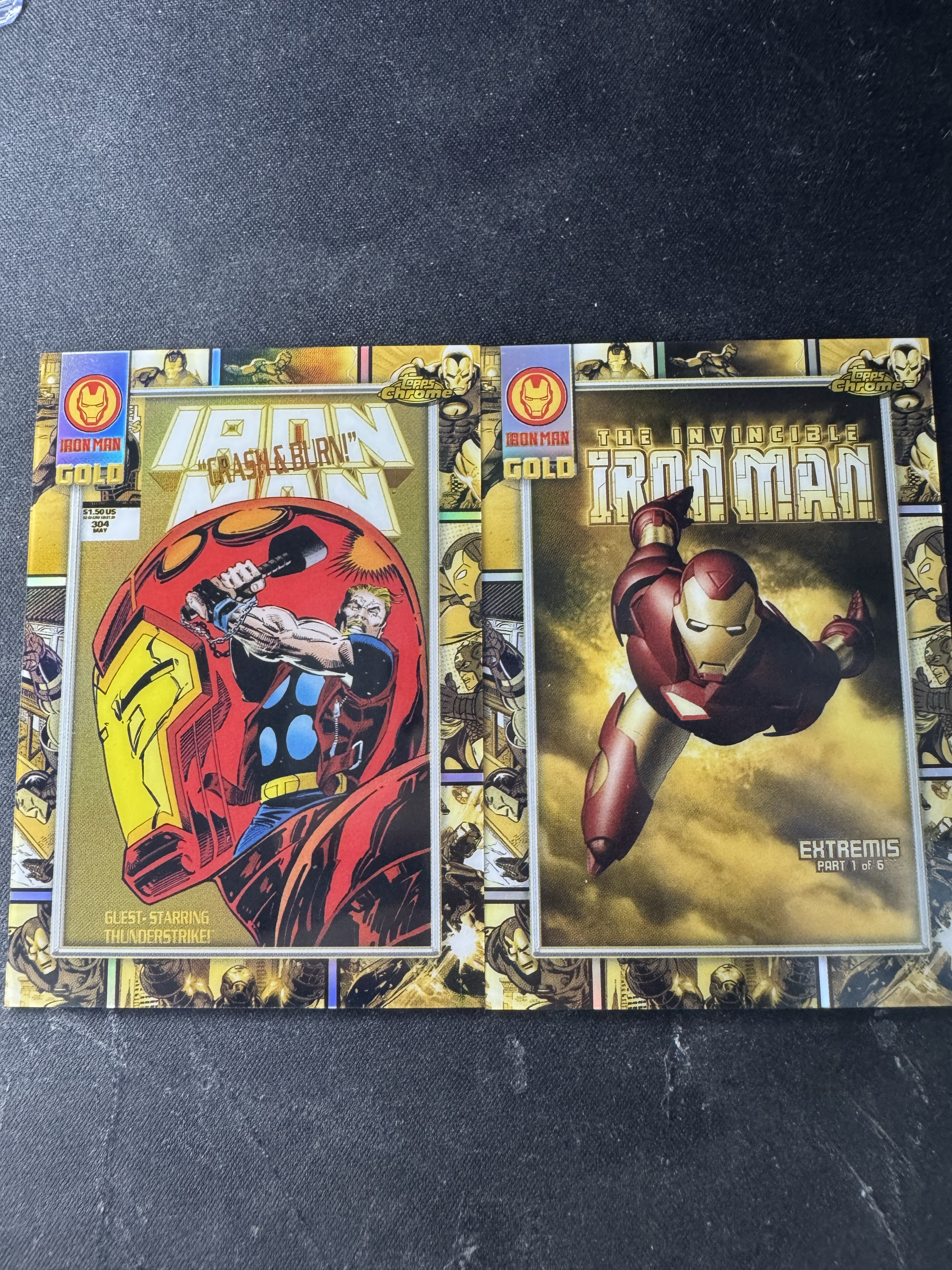 2025 Topps Marvel (MCU) chrome 【科科 尤因】漫威TC Iron-Man 钢铁侠 Gold 黄金特卡 漫画封面 两张打包 卡品如图