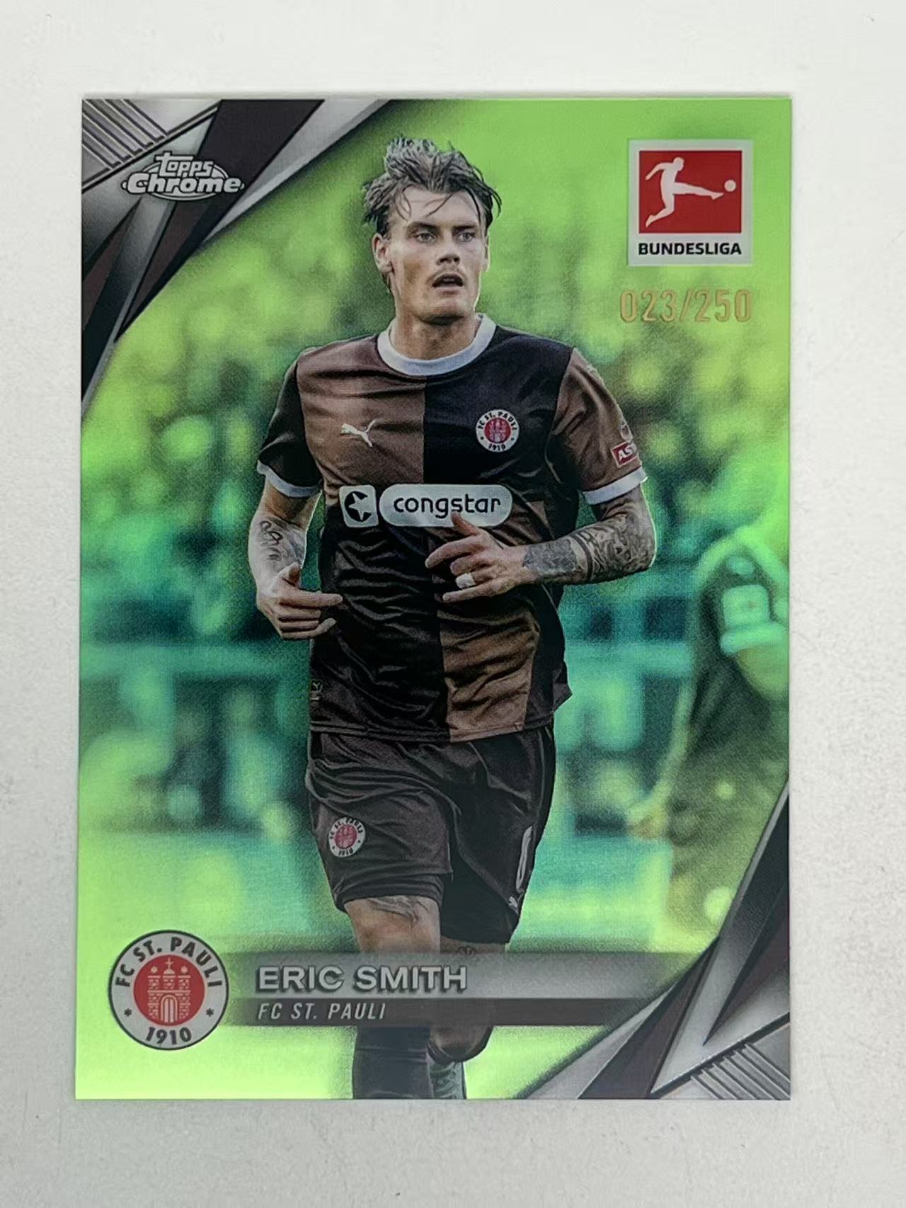 2025 Topps Chrome ERIC SMITH 【宁动拍卖】德甲TC 圣保罗 埃里克 史密斯 023/250编 绿折 折射 卡品如图 收藏必备 De Ligt