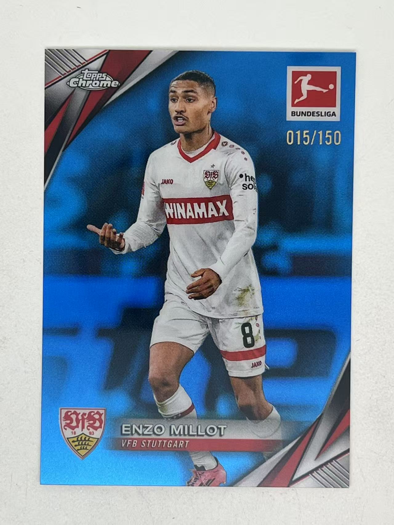 2025 Topps Chrome Enzo Millot 【宁动拍卖】德甲TC 图斯加特 法国 恩佐 米约 015/150编 蓝折 折射 卡品如图 收藏必备 De Ligt