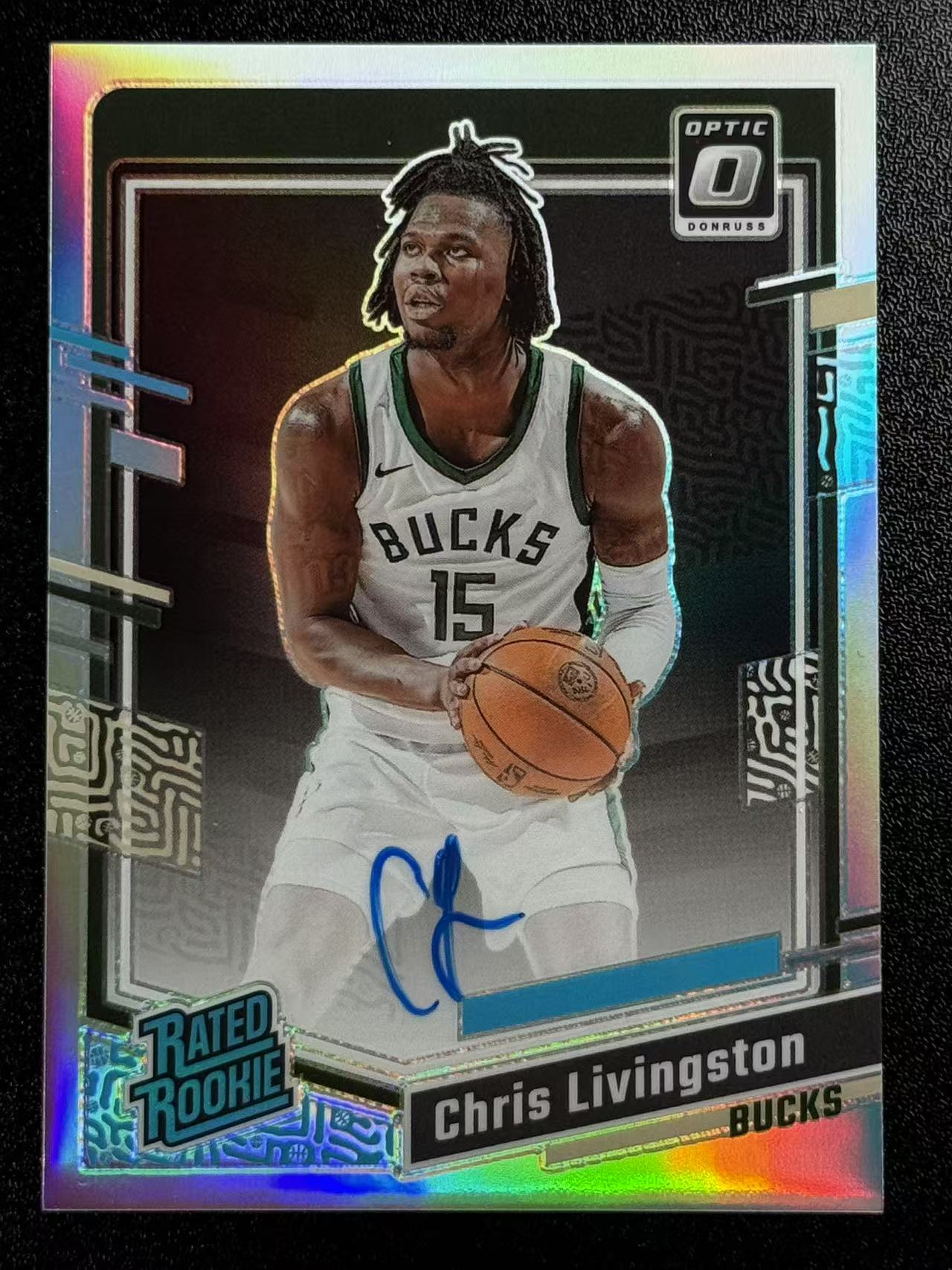2023-24 Panini Donruss Chris Livingston 克里斯利文斯顿 新秀RC 雄鹿选图 杜蕾斯OP系列 银折 折射 签字 卡签 黄叶 162