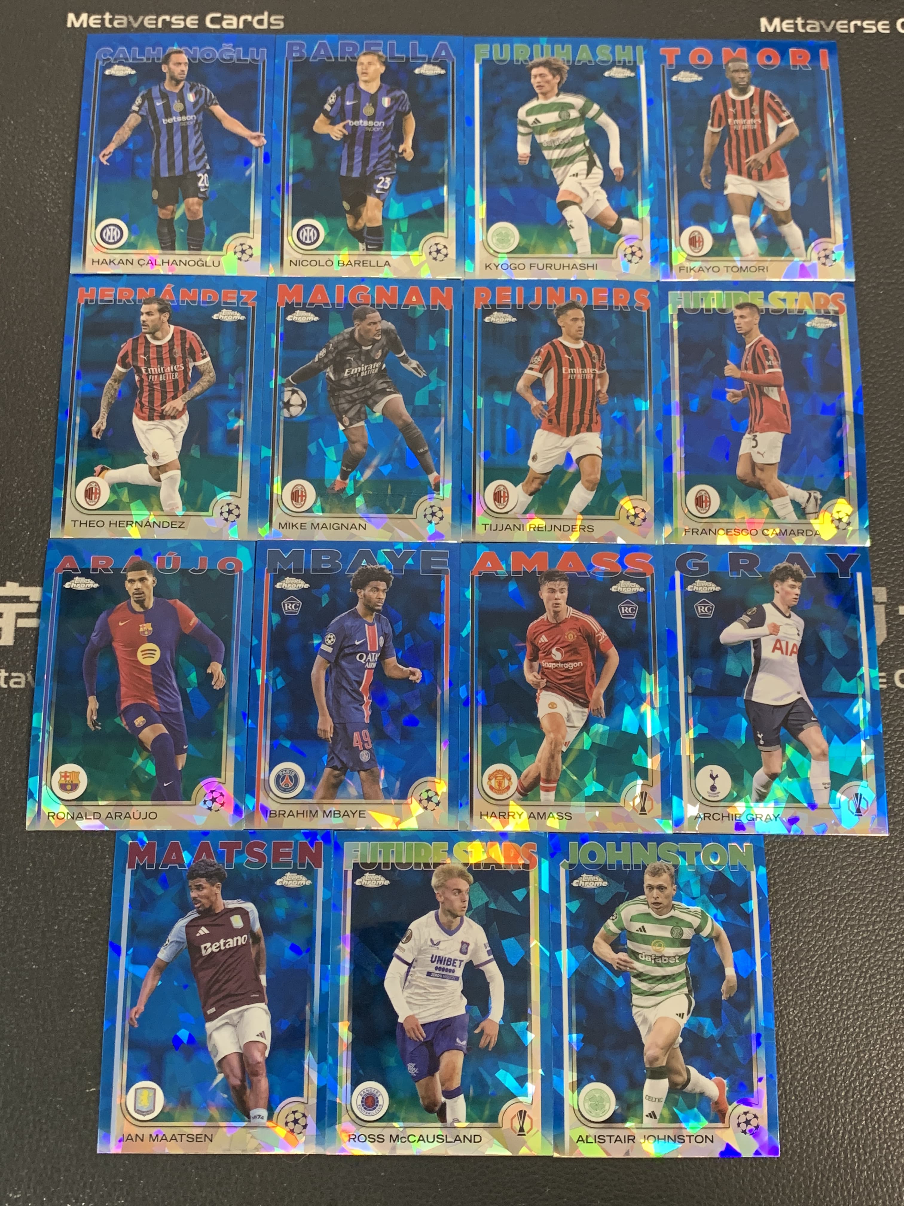 【元宇宙拍卖】LB总010:2024-25 Topps Chrome 欧冠TC 蓝宝石 卡马尔达 阿奇 格雷 特奥 埃尔南德斯 尼科洛 巴雷拉 姆巴耶 RC 新秀 蓝碎冰折 折射 15张lot打包 专收收藏必备