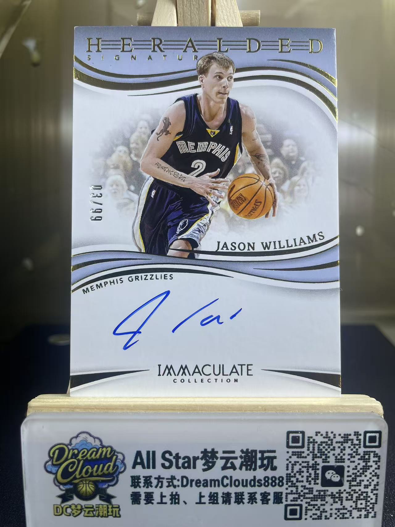 2023-24 Panini Immaculate Jason Williams 【DC梦云】爱咪咪 灰熊 杰森 威廉姆斯 白巧克力 03/99编 签字卡签 Heralded 宣告签 先驱者签 莎