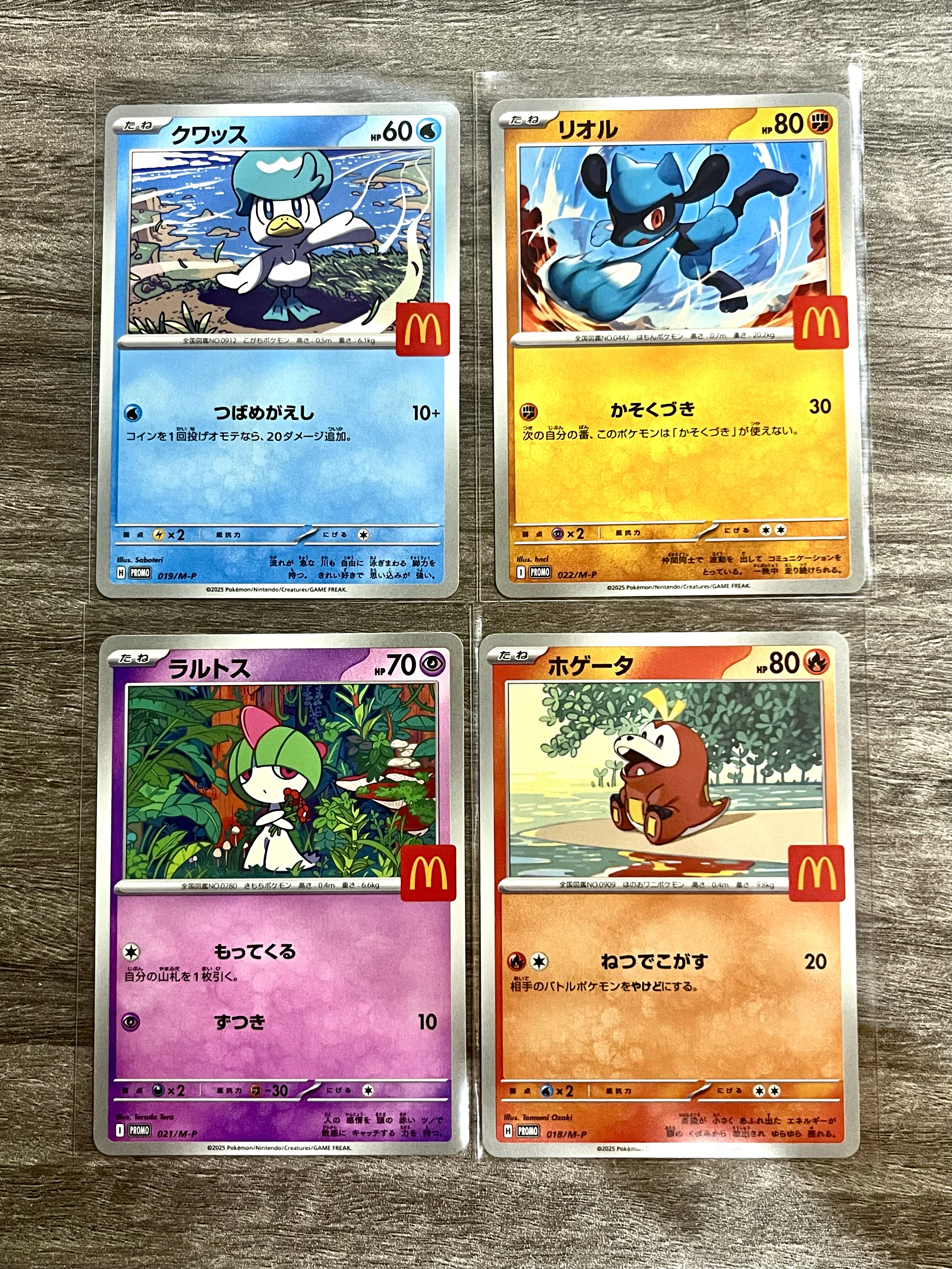 2025 Pokemon TCG PROMO 皮卡丘 ja 最新麦当劳联名 宝可梦 日版 麦当劳活动特典 呆火鳄 润水鸭 拉鲁拉丝 利欧路 特典卡 4张打包