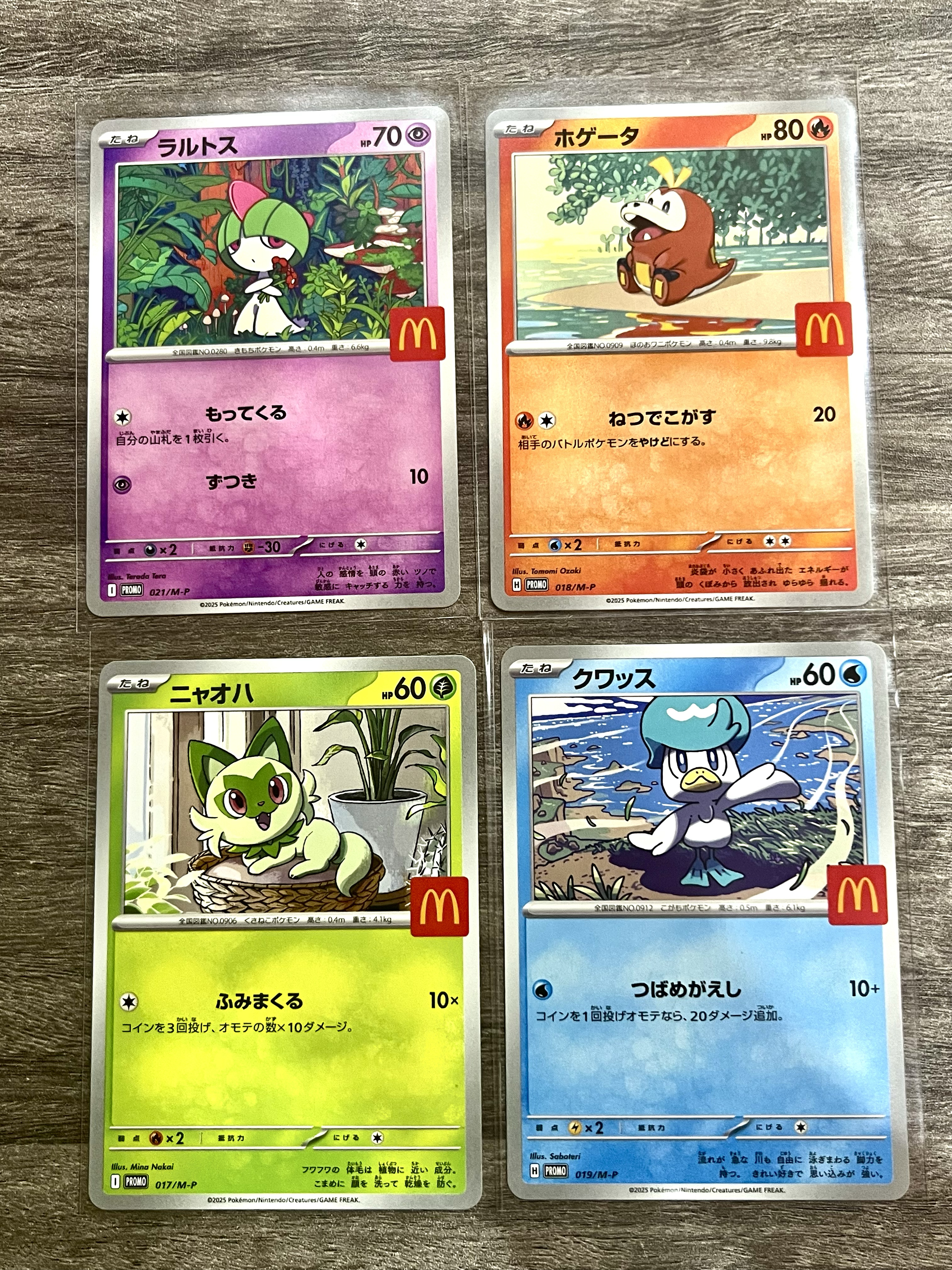 2025 Pokemon TCG PROMO 皮卡丘 ja 最新麦当劳联名 宝可梦 日版 麦当劳活动特典 新叶喵 呆火鳄 润水鸭 拉鲁拉丝 特典卡 4张打包