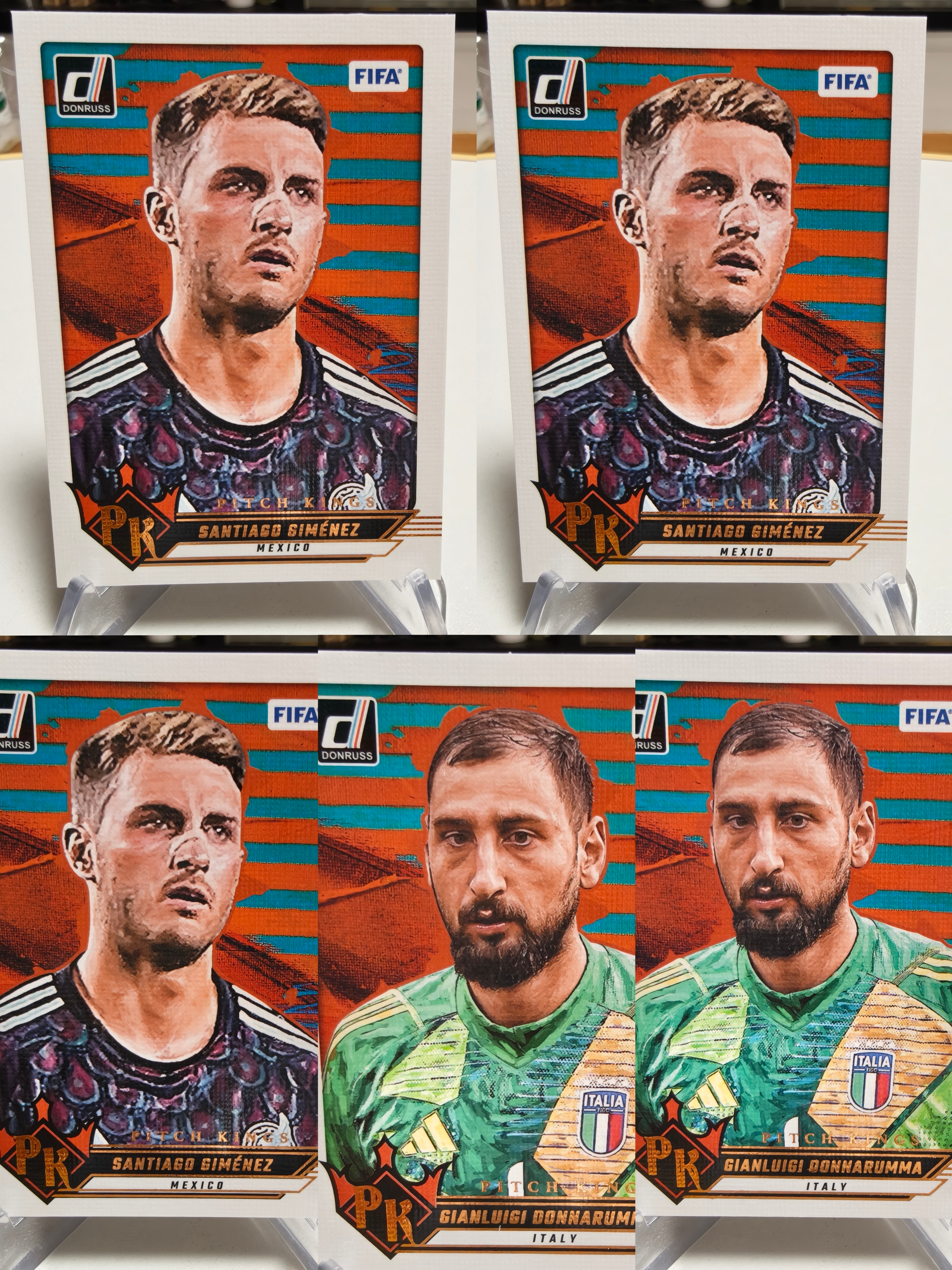 2024-25 Panini Donruss 墨西哥 圣地亚哥 希门尼斯 意大利 吉安路易吉 多纳鲁马 Pitch Kings油画特卡 杜蕾斯 默认通行品相 细节如图 收藏必备【拍前务必看描述】