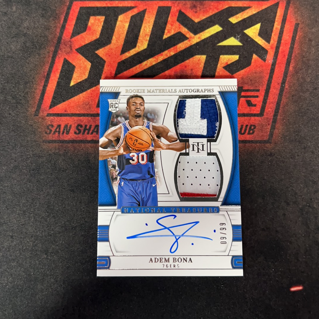 2024-25 Panini National Treasures Adem Bona RC 国宝 76人 新秀 阿德姆 博纳 09/99编 RPA 双窗球衣物料 签字 卡签 WYJ