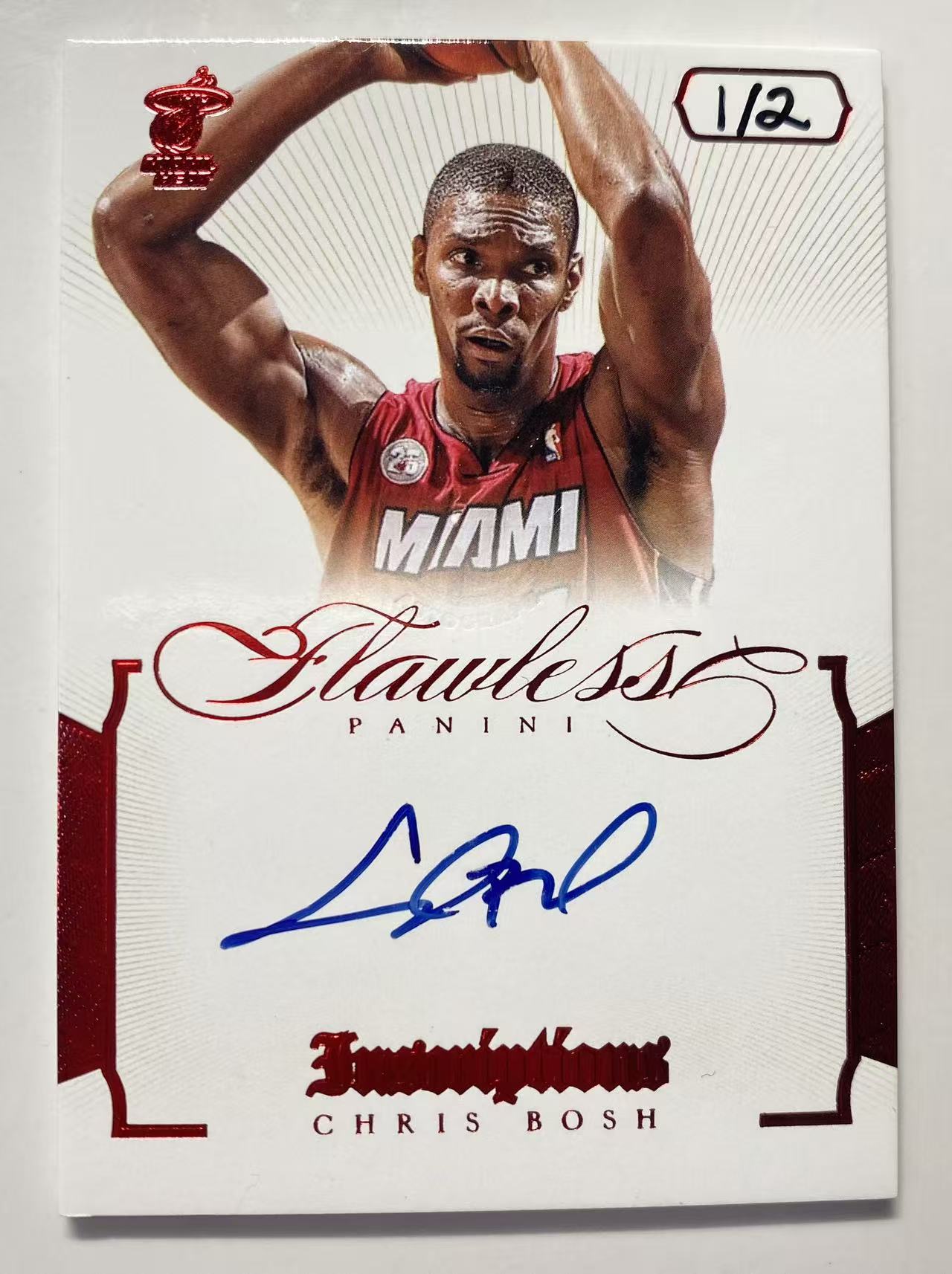 2012-13 Panini Flawless Chris Bosh 【小熊猫代卖】手提系列 热火 龙王 波什 1/2编 首编 同背 红版 手写编 签字 卡签 墨迹完美 回购签(划痕p4,胶印p5)橙