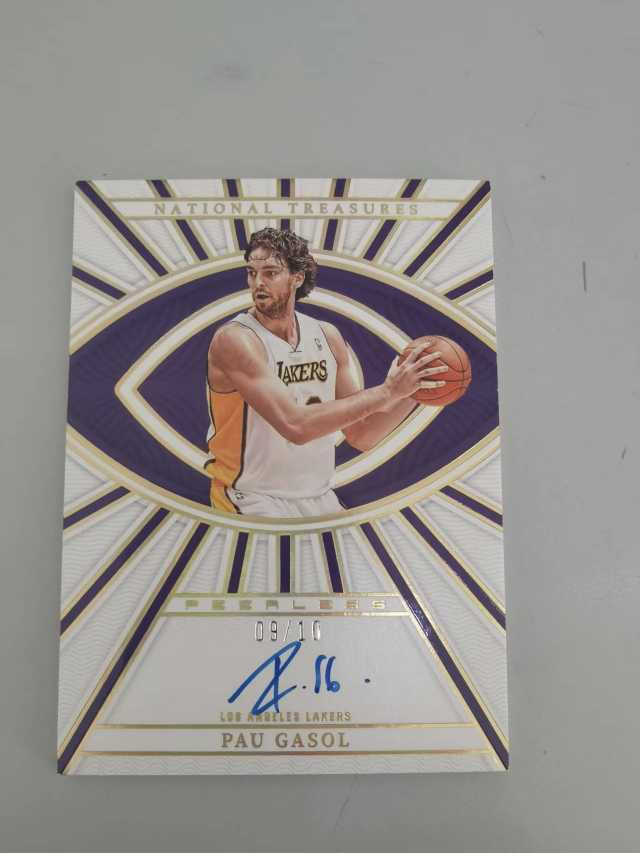 2022-23 Panini National Treasures Pau Gasol 国宝 保罗 加索尔 08/10编 带编 限量 签字 超低编 金平行 卡签 湖人队 大加索尔