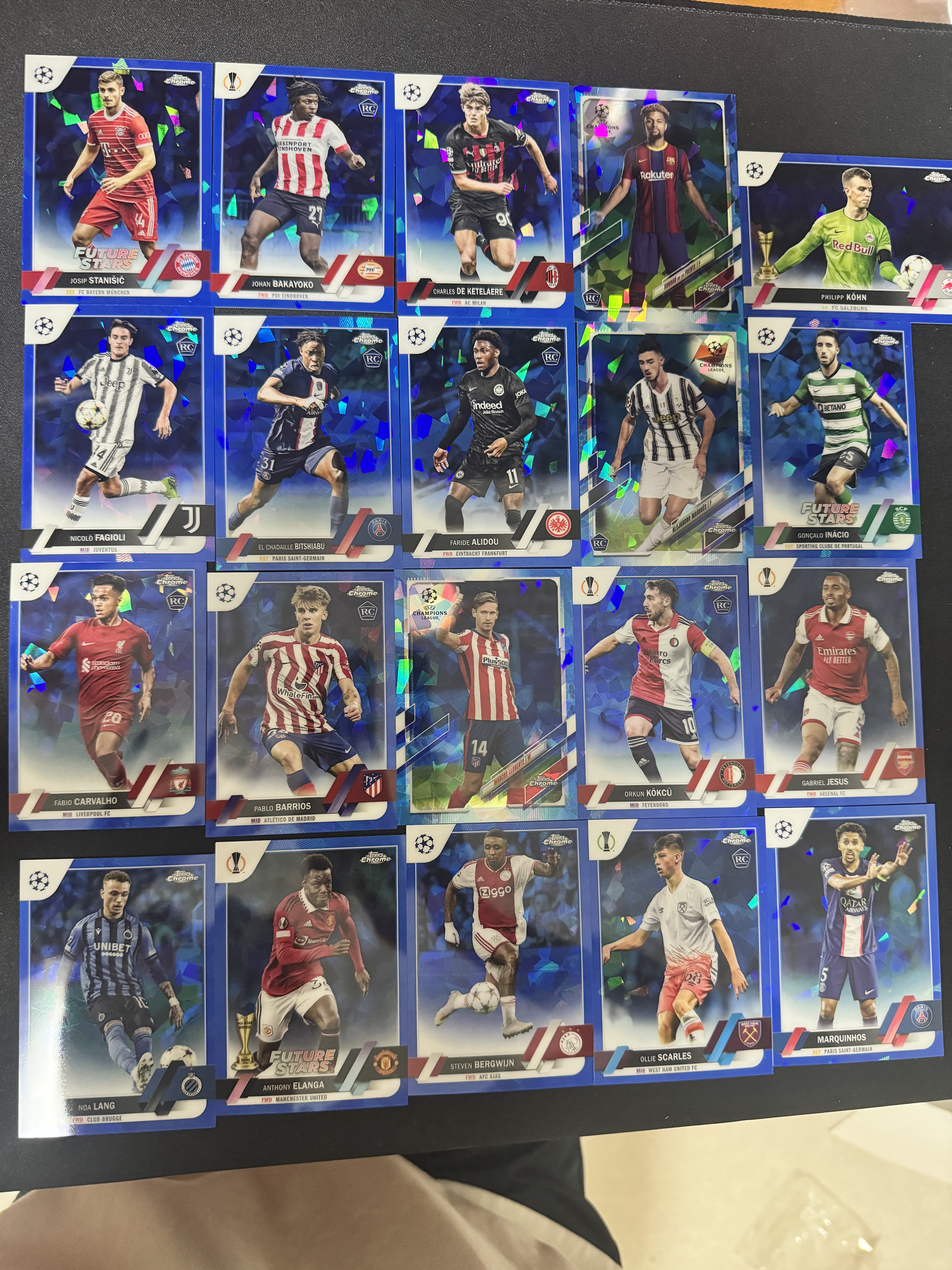 2022-23 Topps 欧冠蓝宝石 20张打包如图 RC 【XQ拍卖】新秀 蓝碎冰折 德凯特拉雷 加维 法比奥 埃兰加等 英超 曼联 红魔 利物浦 红军 法甲 巴黎圣日耳曼 大巴黎 巴萨 收藏
