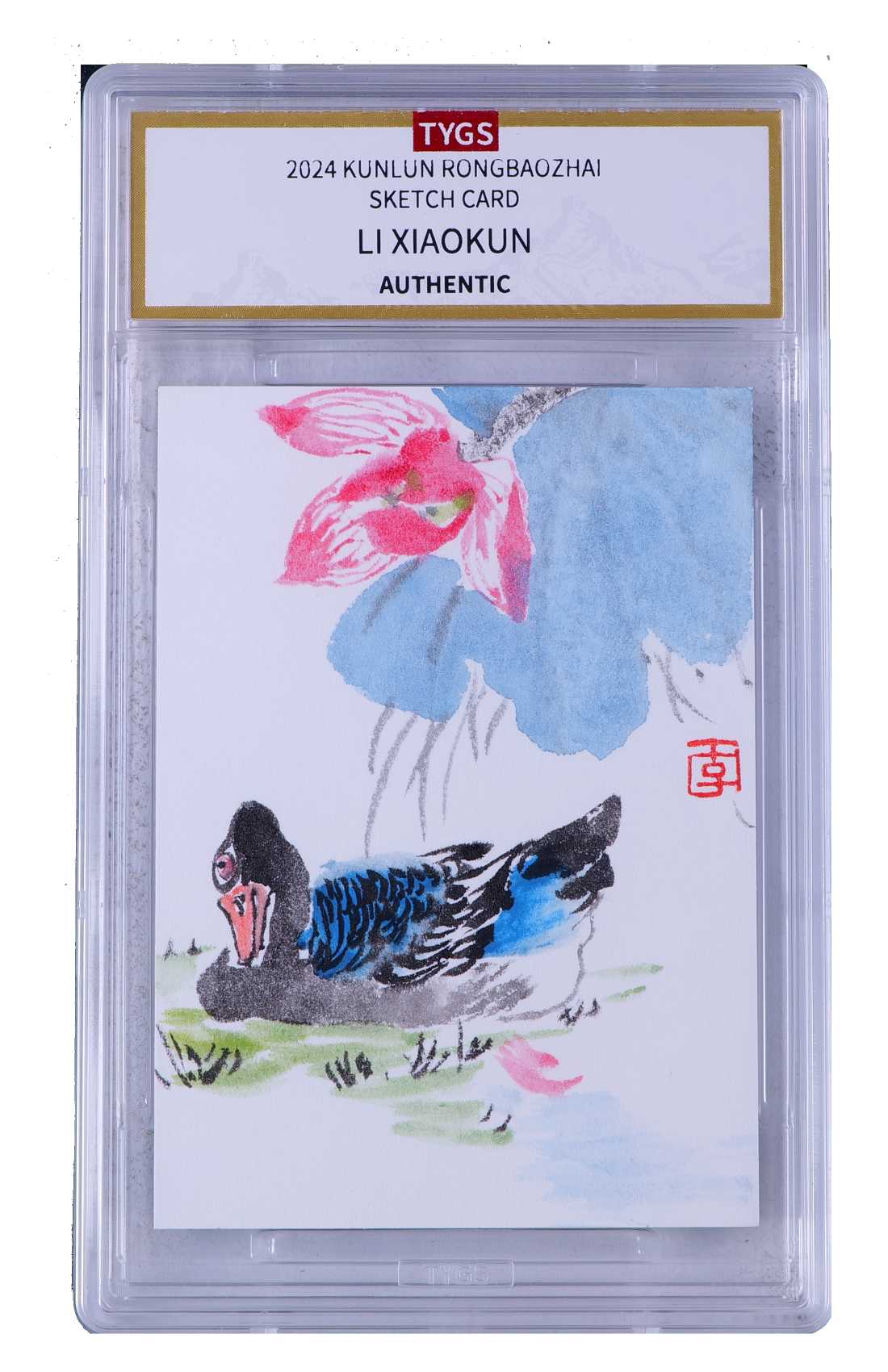 2025中版昆仑 荣名为宝 荣宝斋 350 周年纪念收藏手绘卡 现代大师:李晓坤 作品: 荷下鸳鸯1/1编 天元鉴真 收藏必备 实卡精美