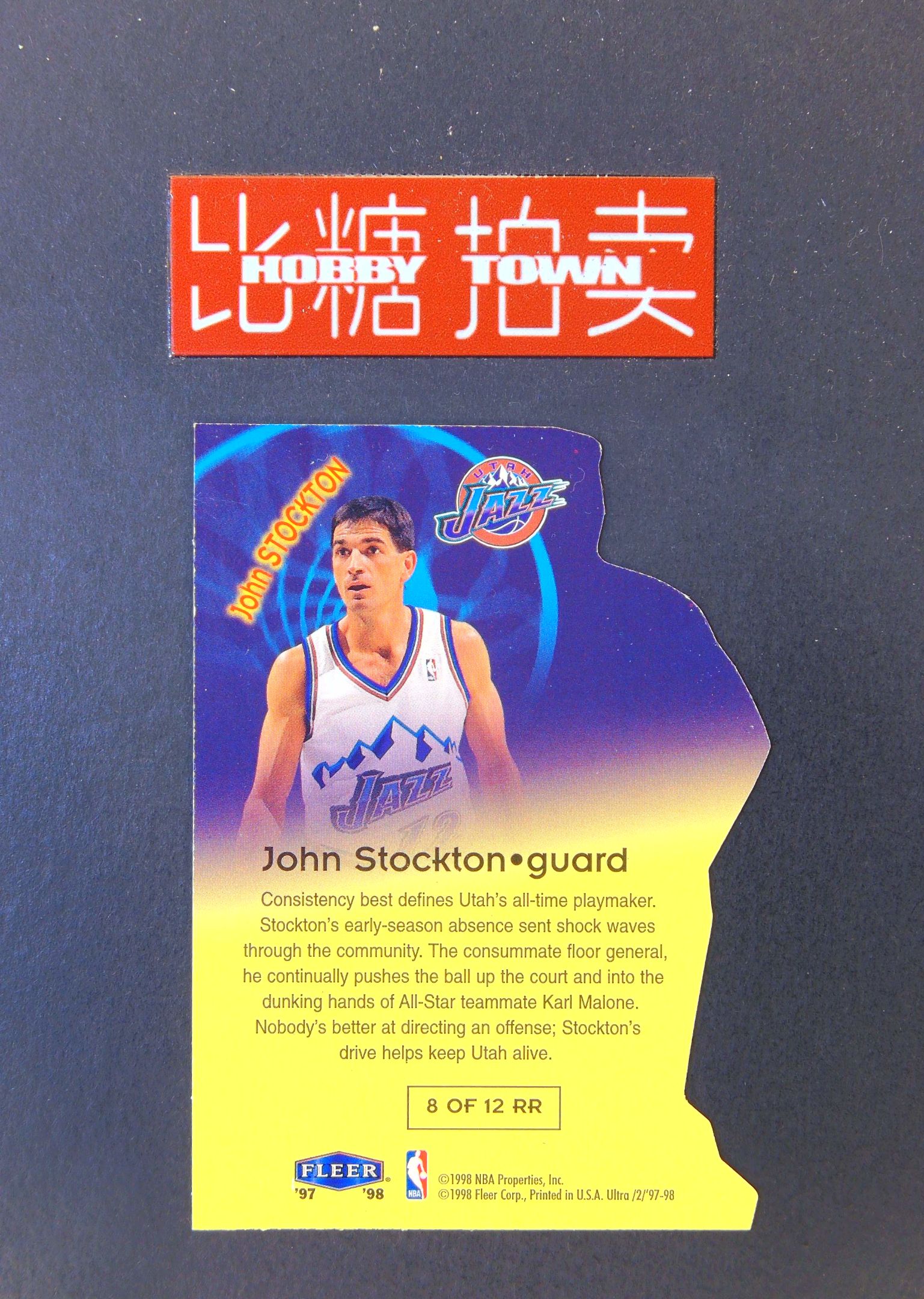 1997-98 Fleer Ultra John Stockton 【比糖拍卖】约翰 斯托克顿 异形切割 爆闪Holo折射 Rim Rockers特卡 USA老卡老特投资首选轻印(四个汉子