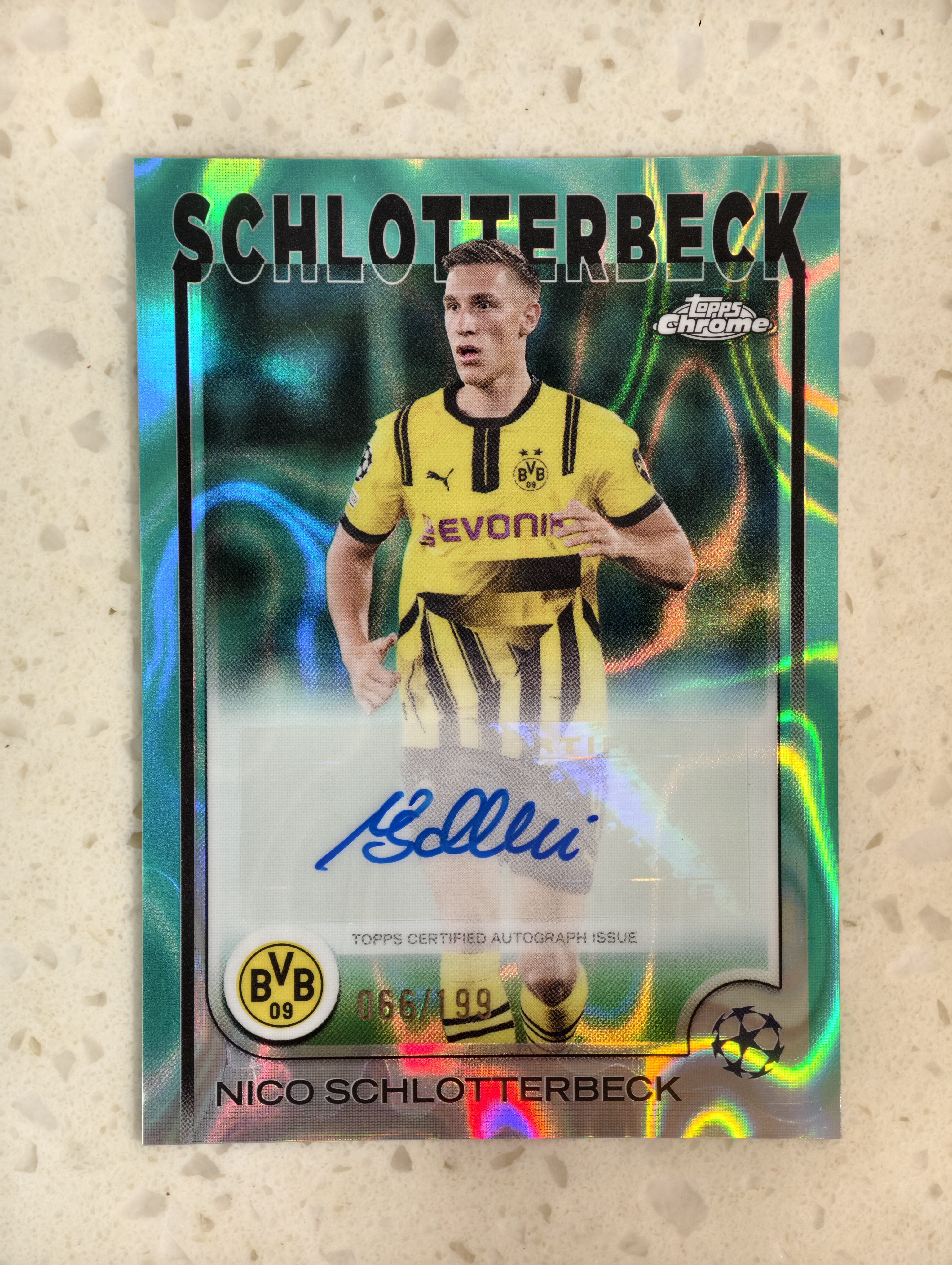 2024-25 Topps Chrome Nico Schlotterbeck 欧冠TC 施洛特贝克 签字 199编 青熔岩 折射 多特铁卫 德国🇩🇪国脚 豪门猎物 收藏必备