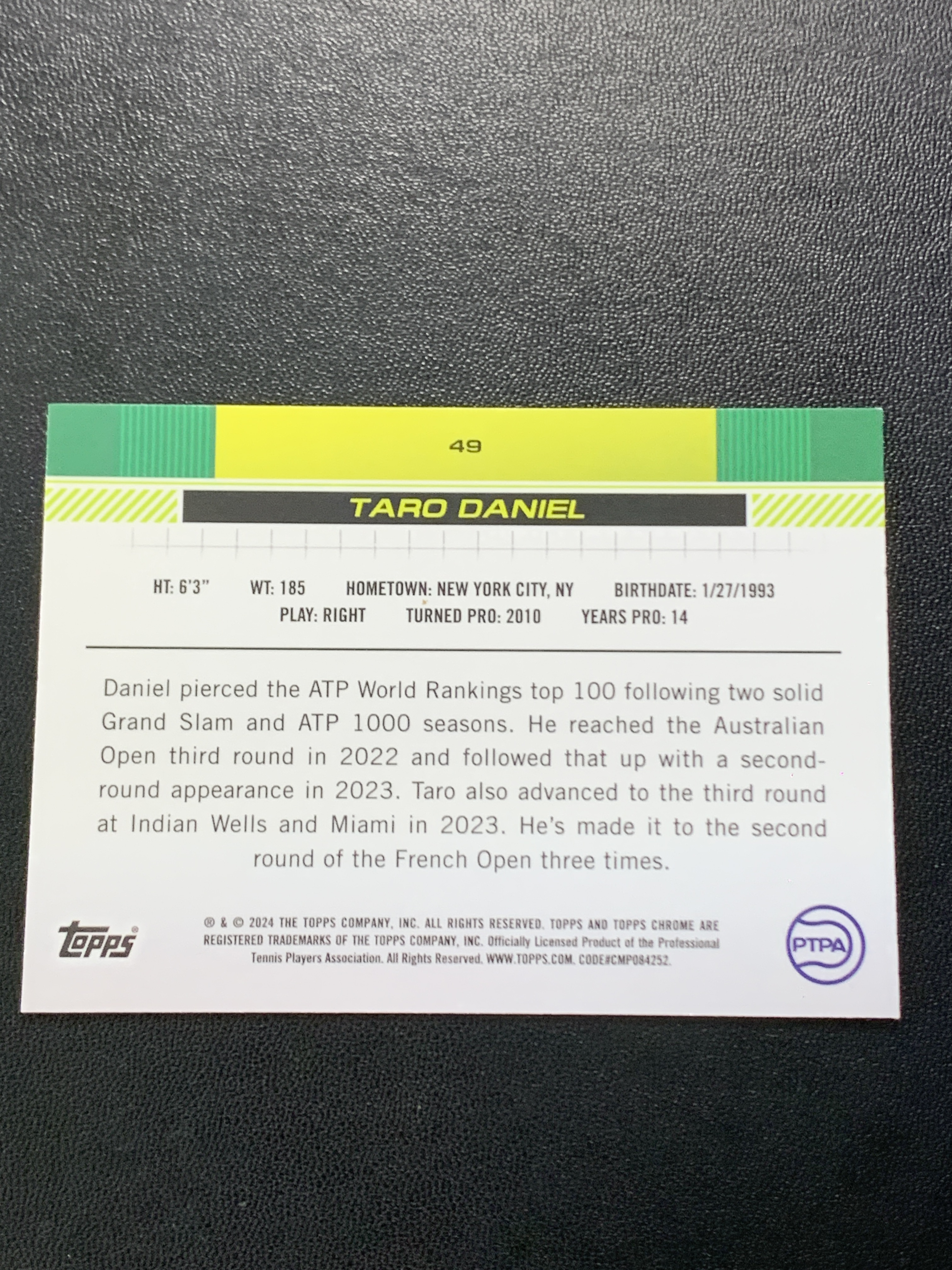 2024 Topps Chrome 网球 Taro Daniel 丹尼尔太郎 紫绿折 150编 1st 日本 折射 专收必备