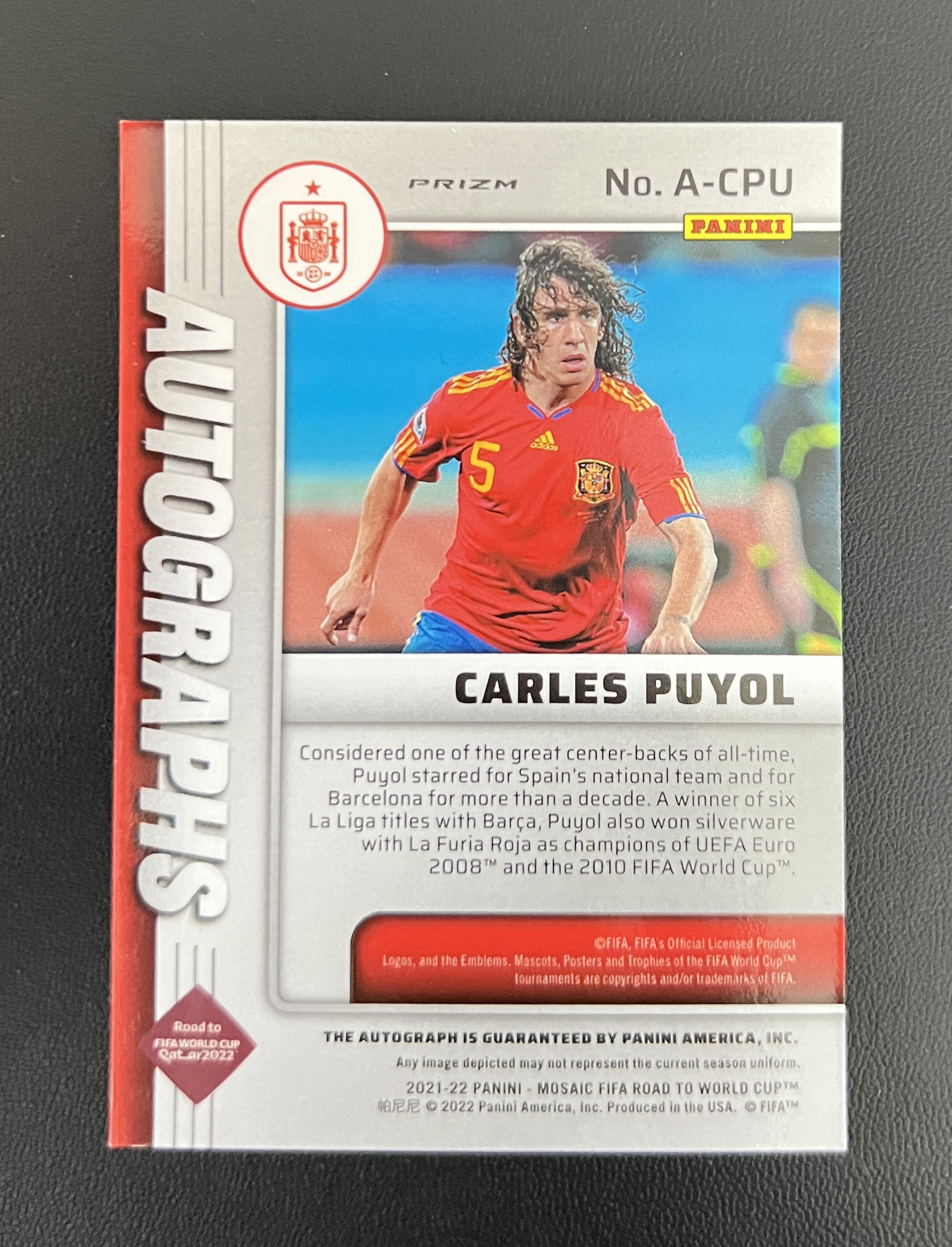 2021-22 Panini Mosaic Carles Puyol 世界杯 卡莱斯 普约尔 签字 签名 完美签 银马赛克折 折射 巴萨 西班牙