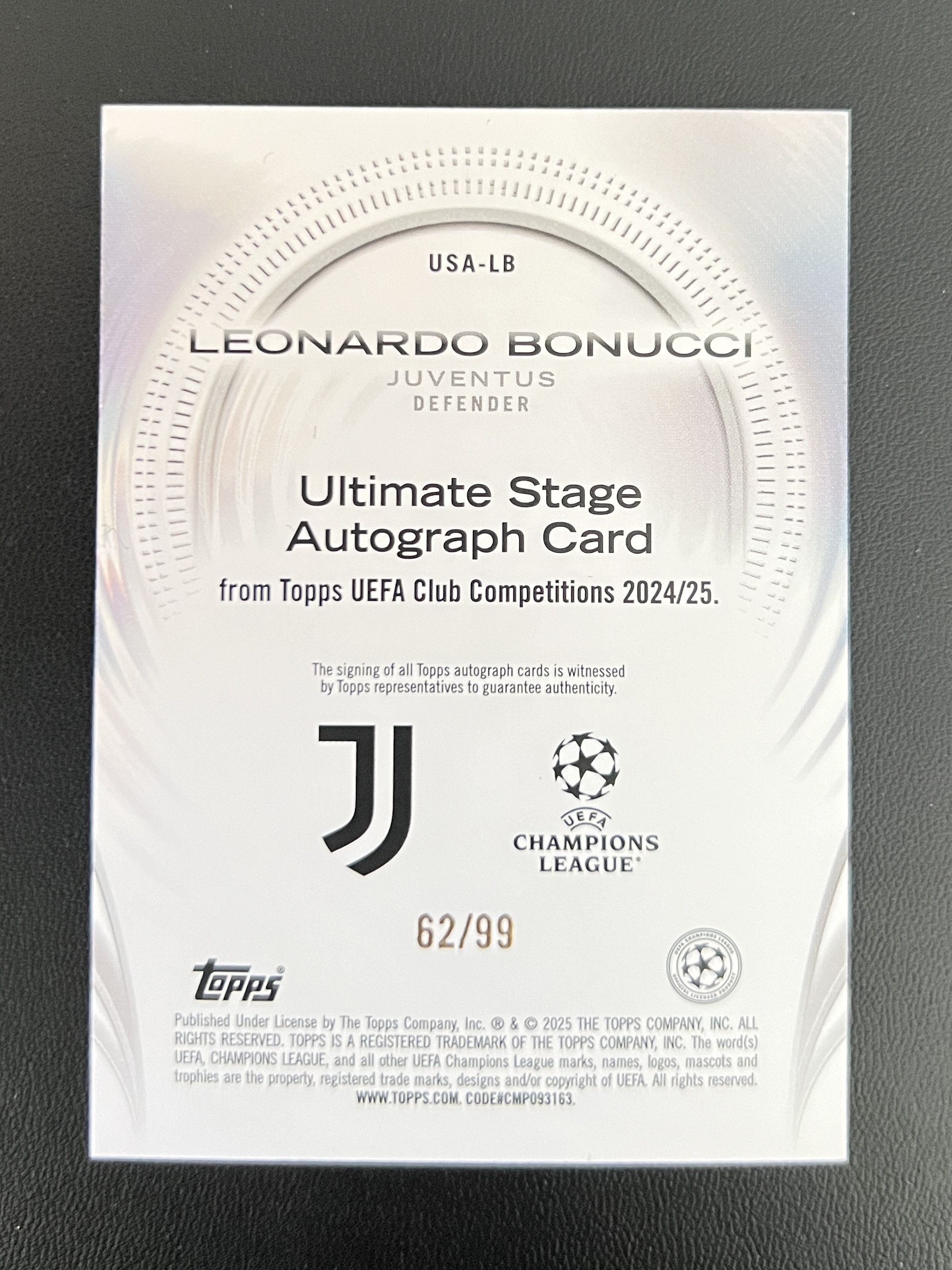 2025 Topps UEFA Champions League Giorgio Chiellini 基耶利尼 尤文图斯 99编 欧冠 签字 终极舞台签 多图已拍