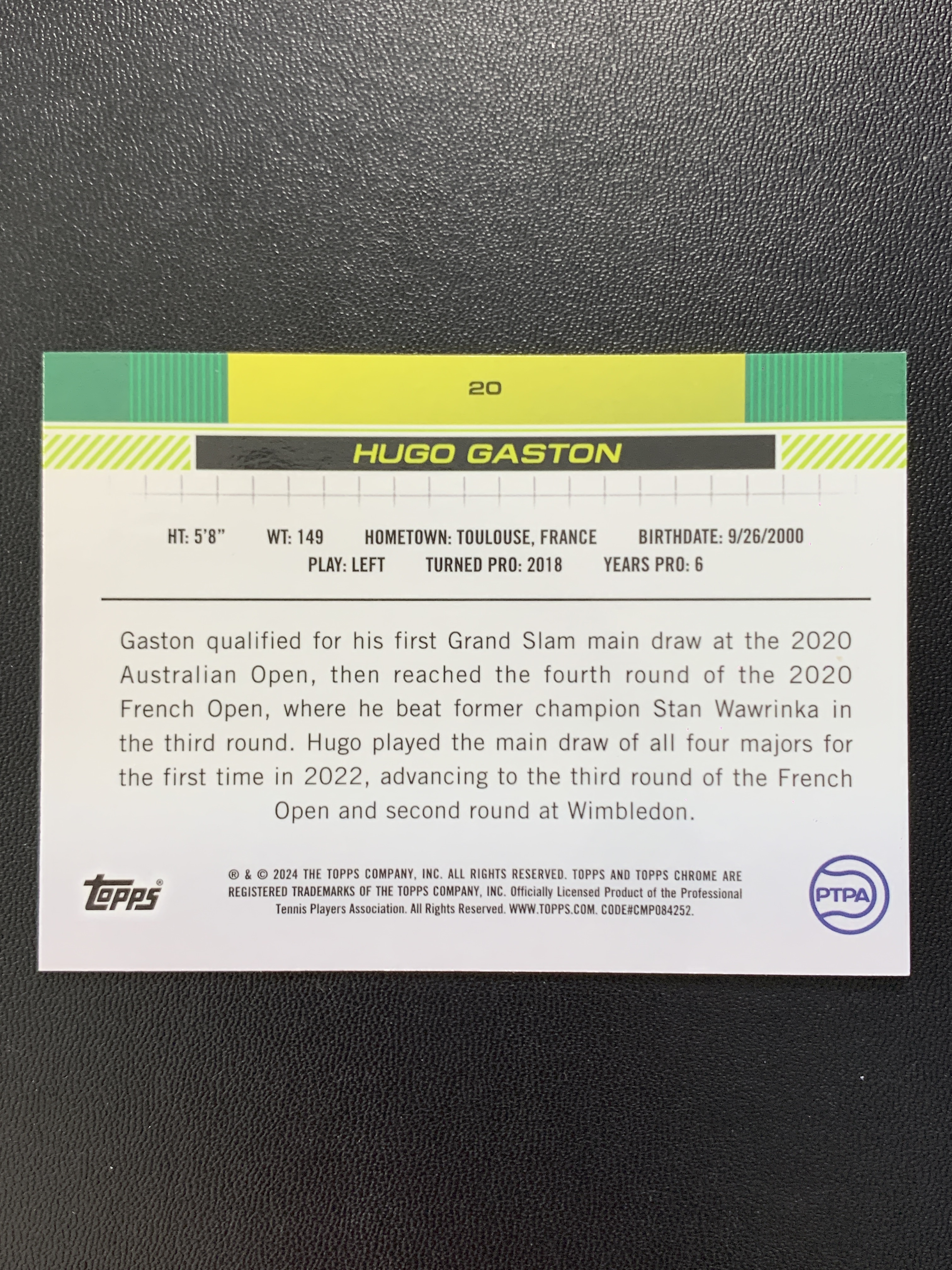 2024 Topps Chrome 网球 Hugo Gaston 雨果 加斯顿 草绿折 299编 1st 折射 专收必备