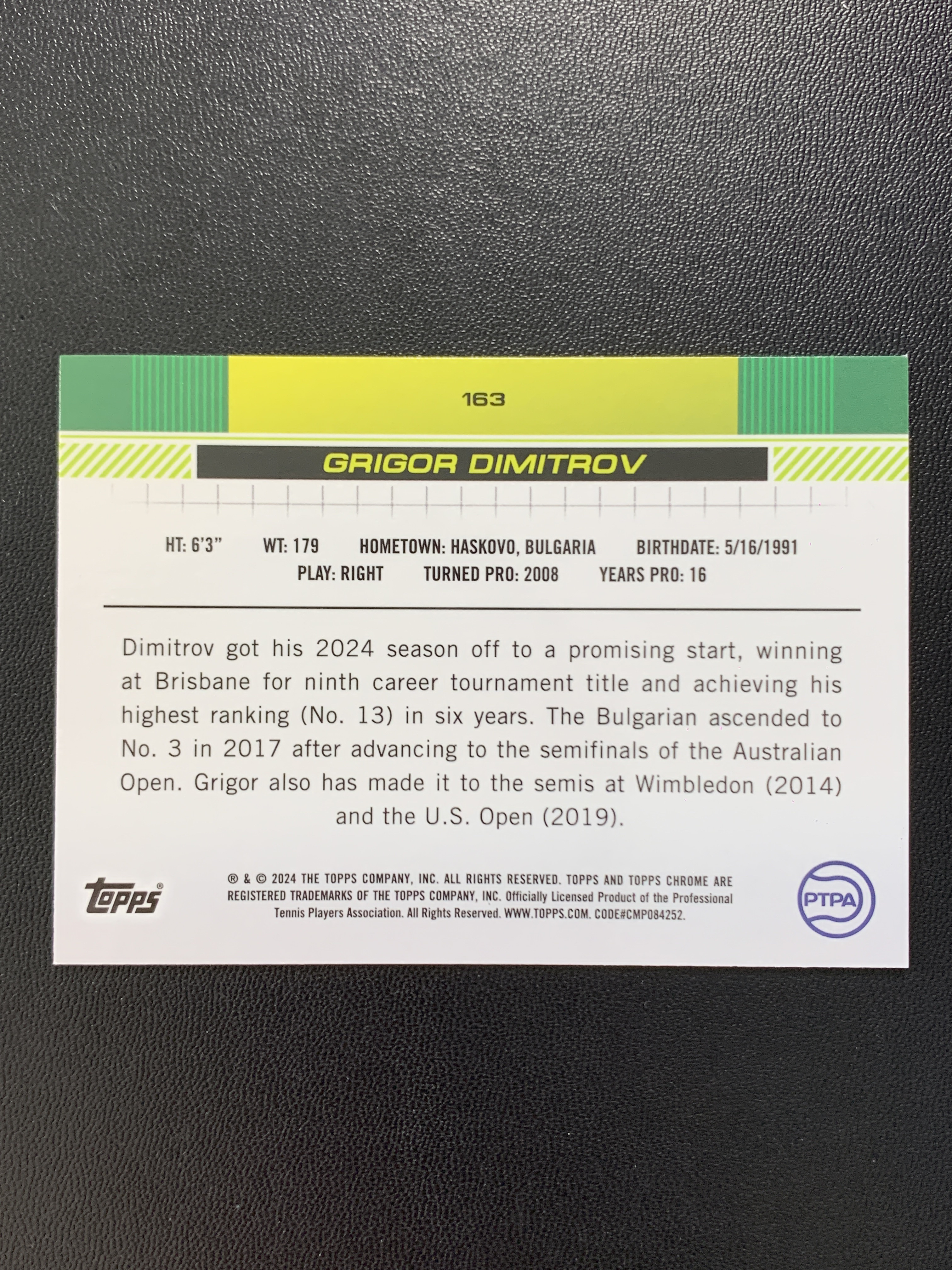 2024 Topps Chrome 网球 Grigor Dimitrov 迪米特洛夫 迪米特罗夫 草绿折 299编 折射 专收必备