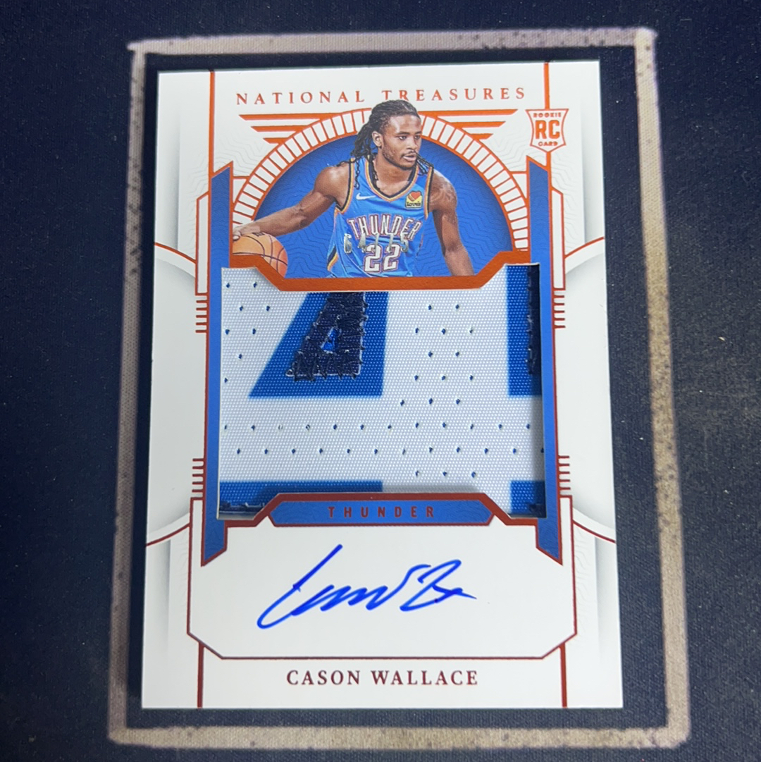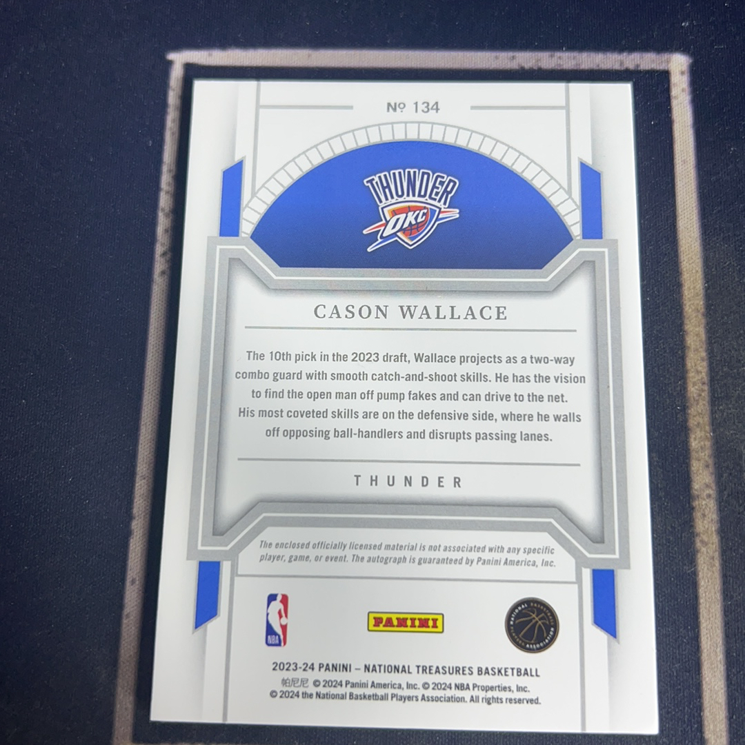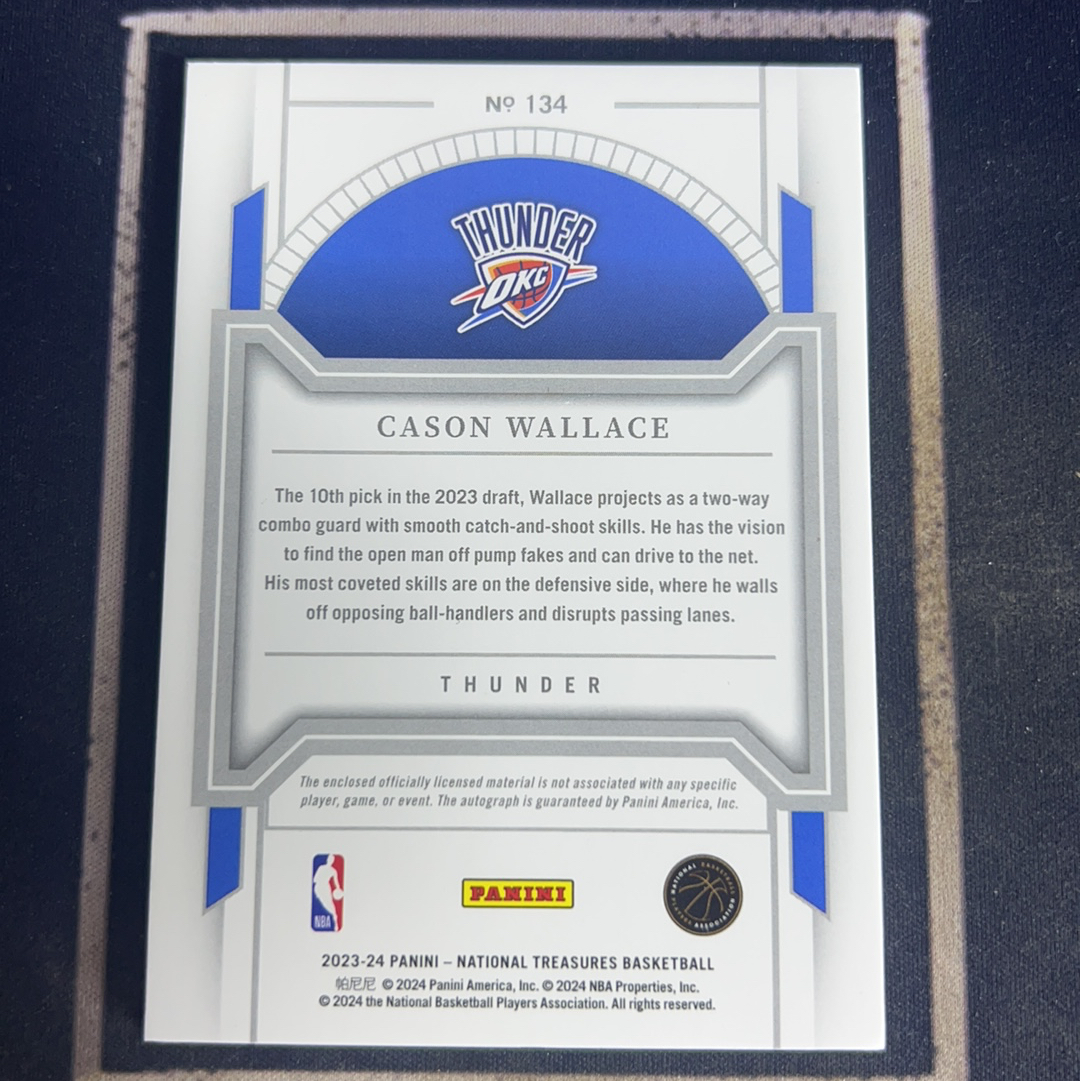 2023-24 Panini National Treasures Cason Wallace RC 国宝 新秀 雷霆 卡森 华莱士 签字 球衣物料 RPA 64/75编 瑕疵如图 WQ2