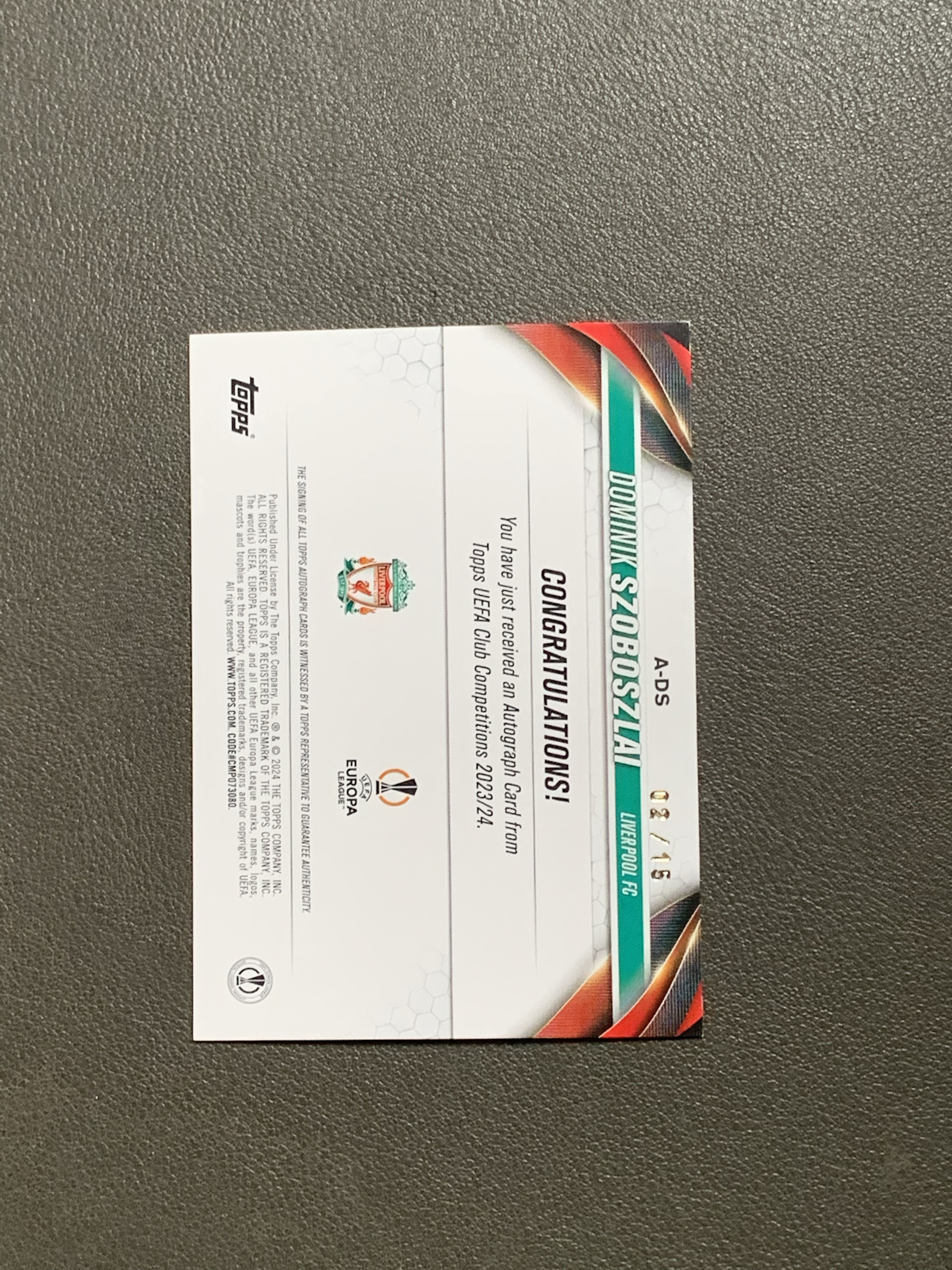 topps 23-24 欧冠 碧玉 15编 紫折 折射 签字 利物浦 索博斯洛伊 匈牙利 dominik szoboszlai hungary /15