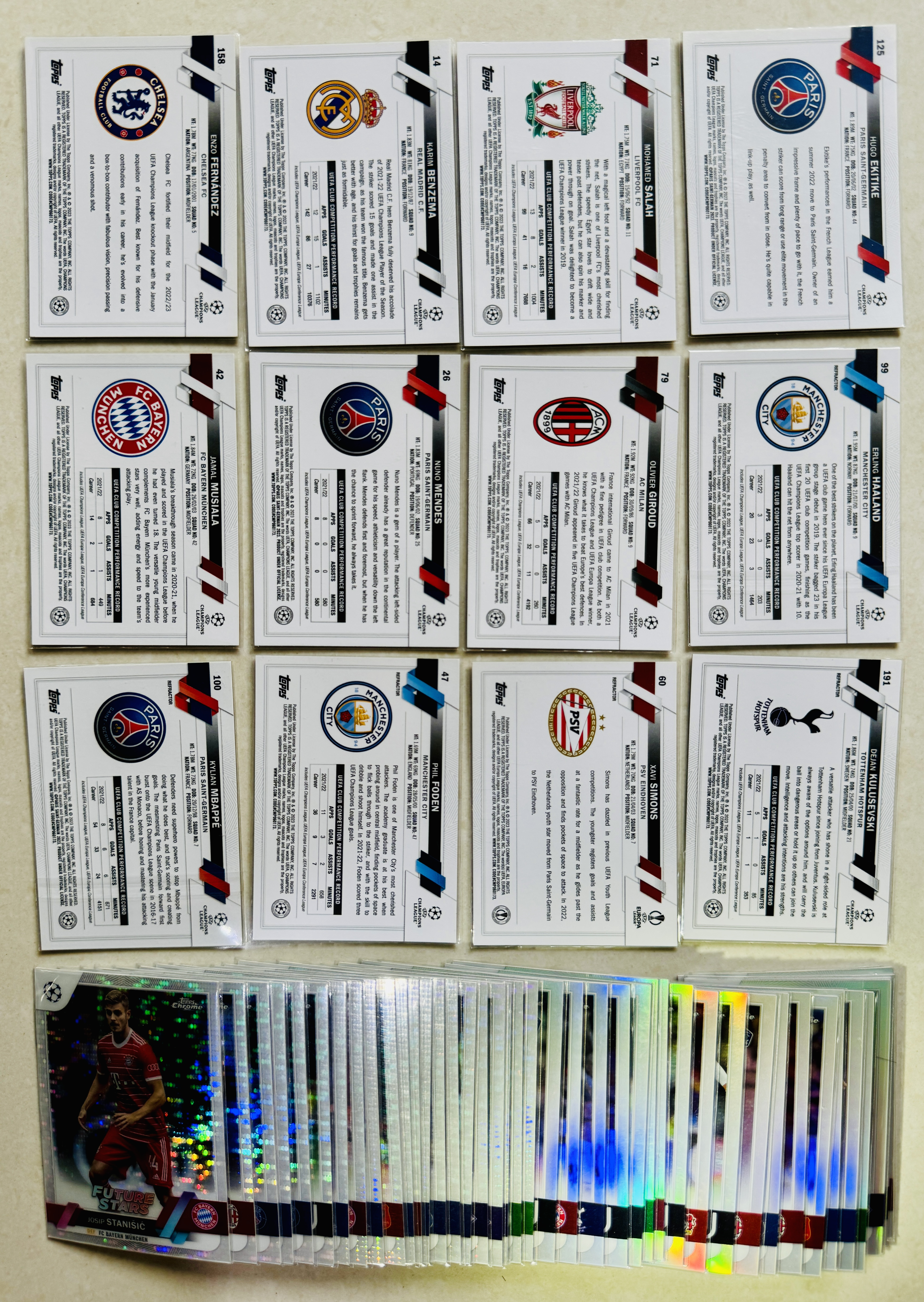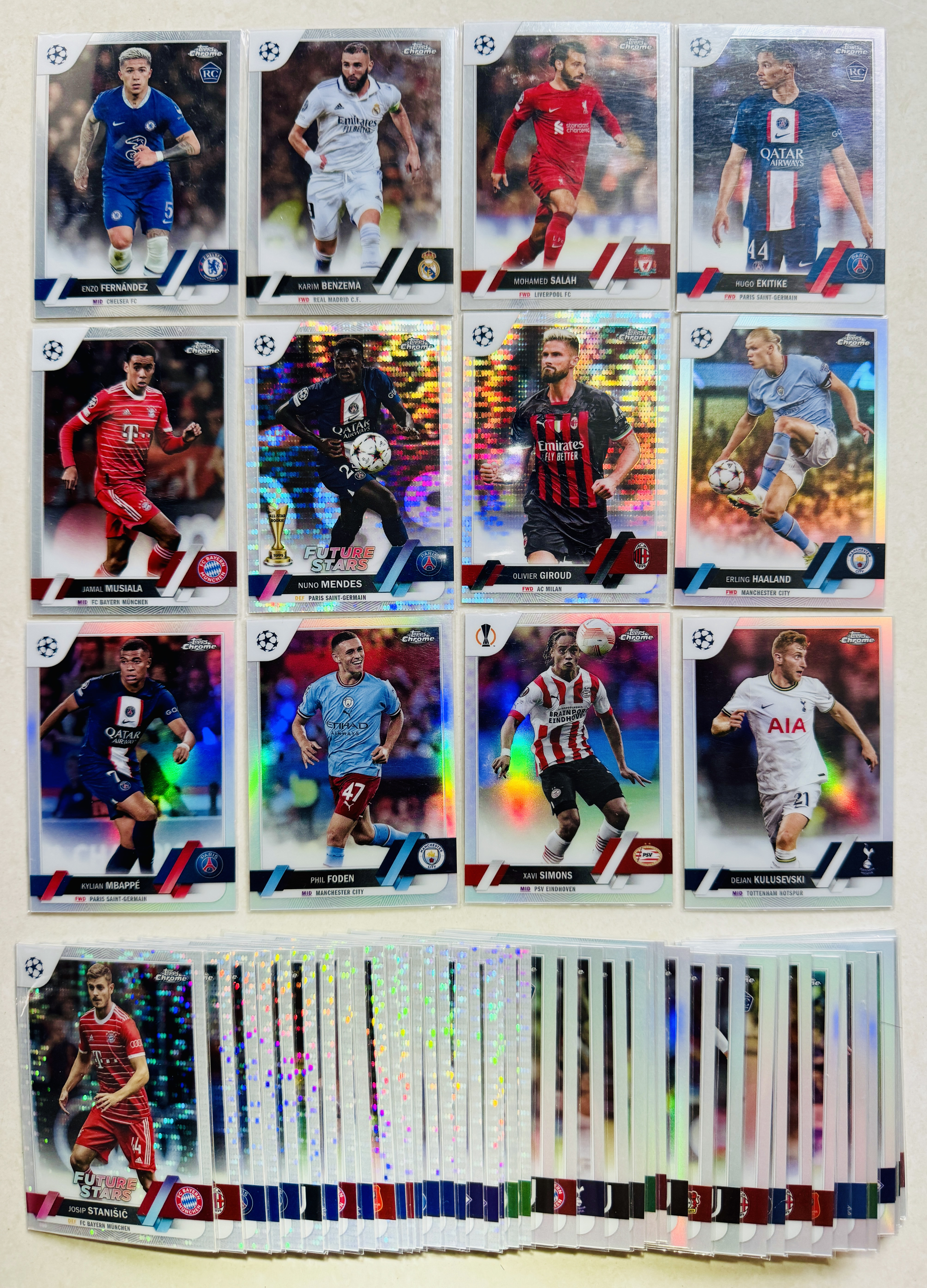 2023 Topps Chrome 巨星新秀 RC 大巴黎曼城切尔西利物浦皇马拜仁尤文 哈兰德 恩佐 穆西亚拉 本泽马 萨拉赫 姆巴佩 福登 哈维西蒙斯等 银脉冲折鱼鳞折银折base折射56张不保卡品