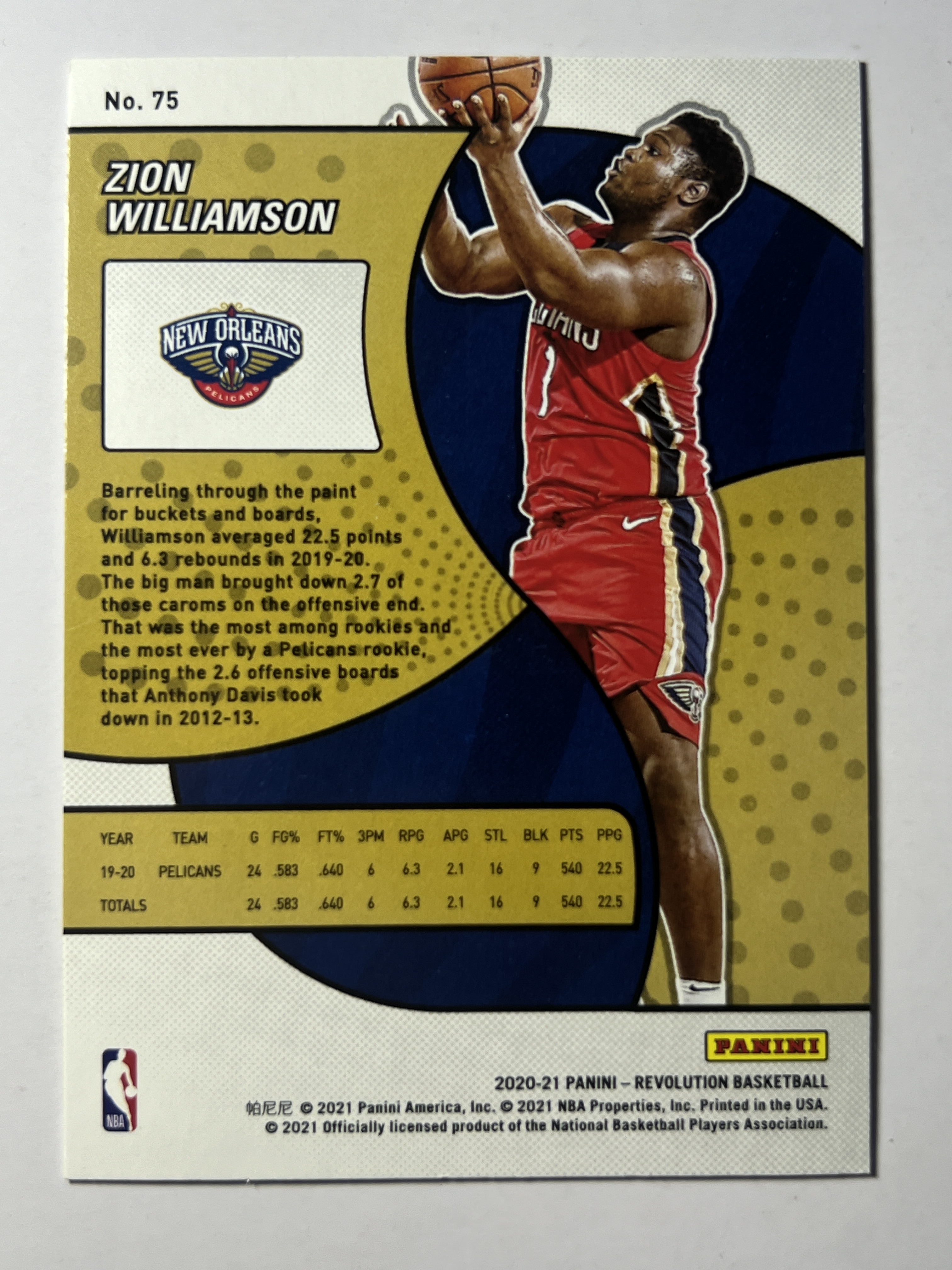 2020-21 Panini Revolution Zion Williamson 锡安 威廉姆森 胖虎 蔡恩 鹈鹕队 折射卡 《 热门球星 收藏必备 》 实卡精美 #75