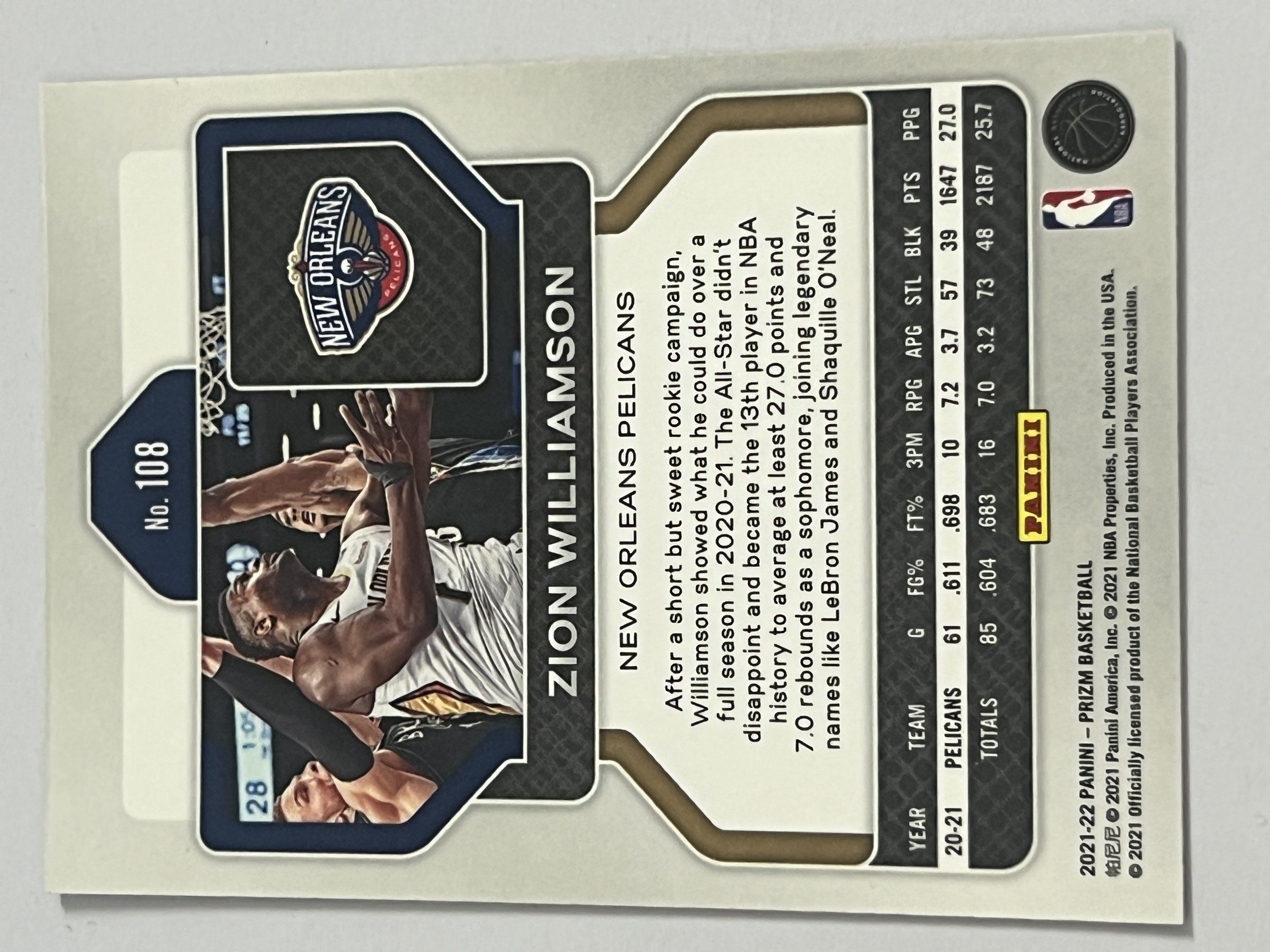 2021-22 Panini Prizm Zion Williamson 锡安 威廉姆森 胖虎 蔡恩 鹈鹕队 热门球星 收藏必备 实卡精美 #108