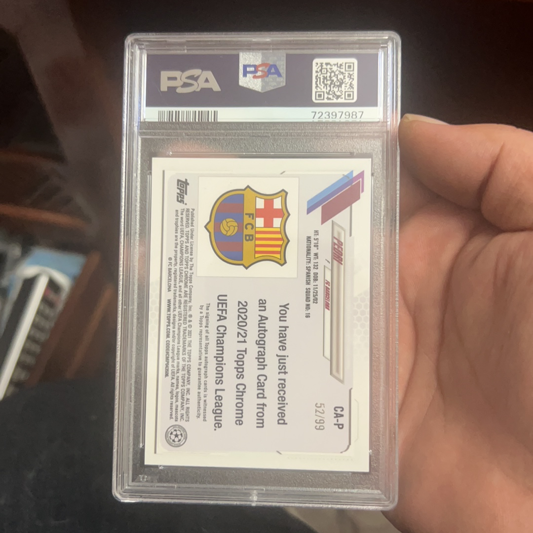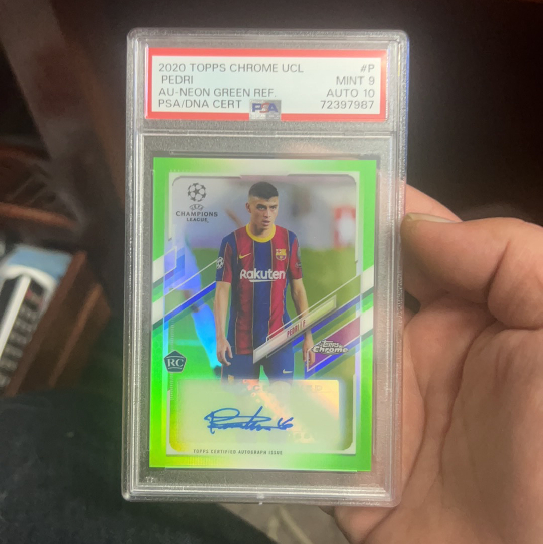 2020 Topps TOPPS CHROME UEFA CHAMPIONS LEAGUE AUTOGRAPHS Pedri RC AU-NEON GREEN REF. #P PSA9