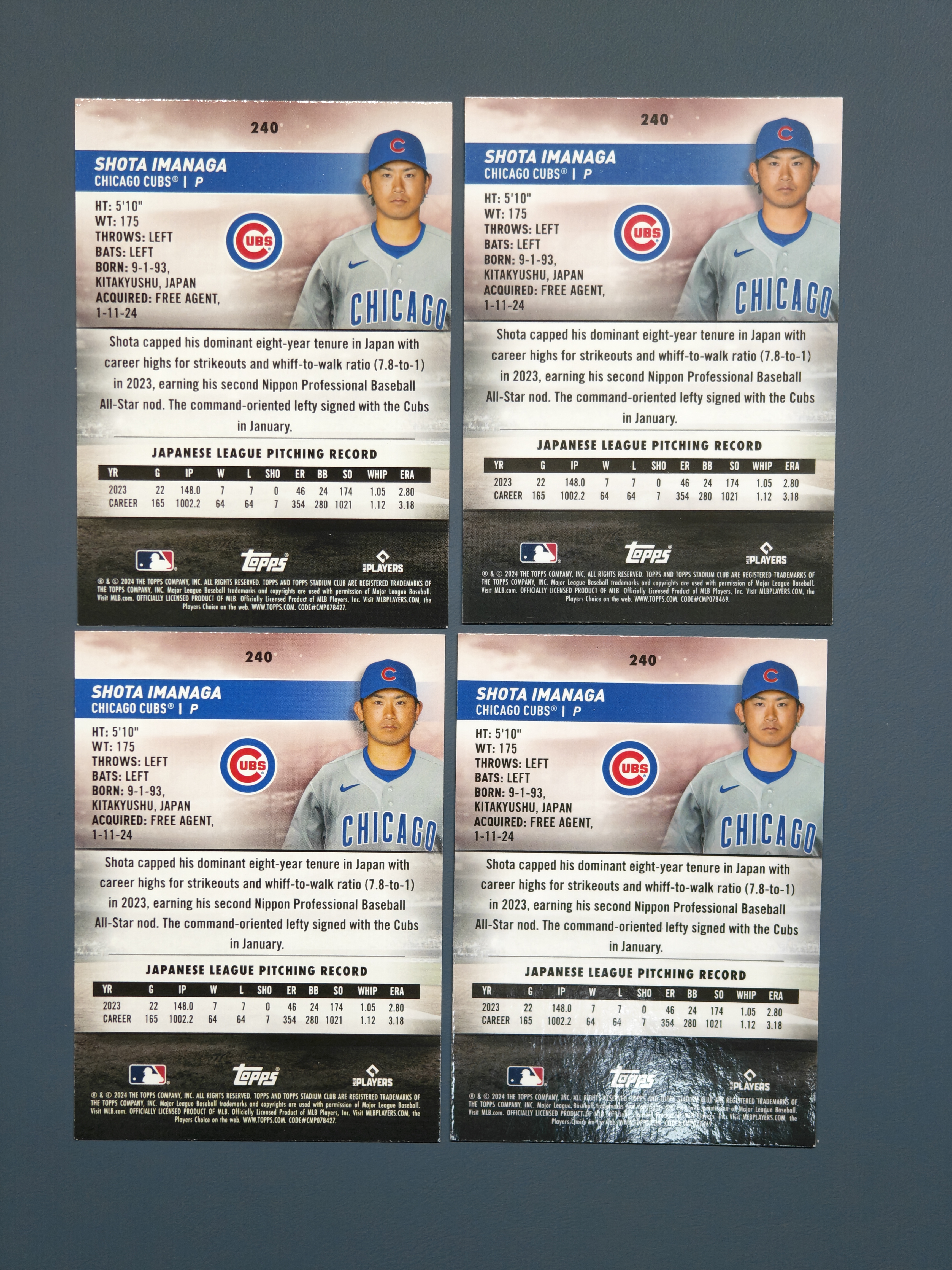 2024 Topps Stadium Club Shota Imanaga RC 竞技场 今永昇太 46/75编 Chrome版紫平行 红平行 Lot不保卡品 均有膜夹