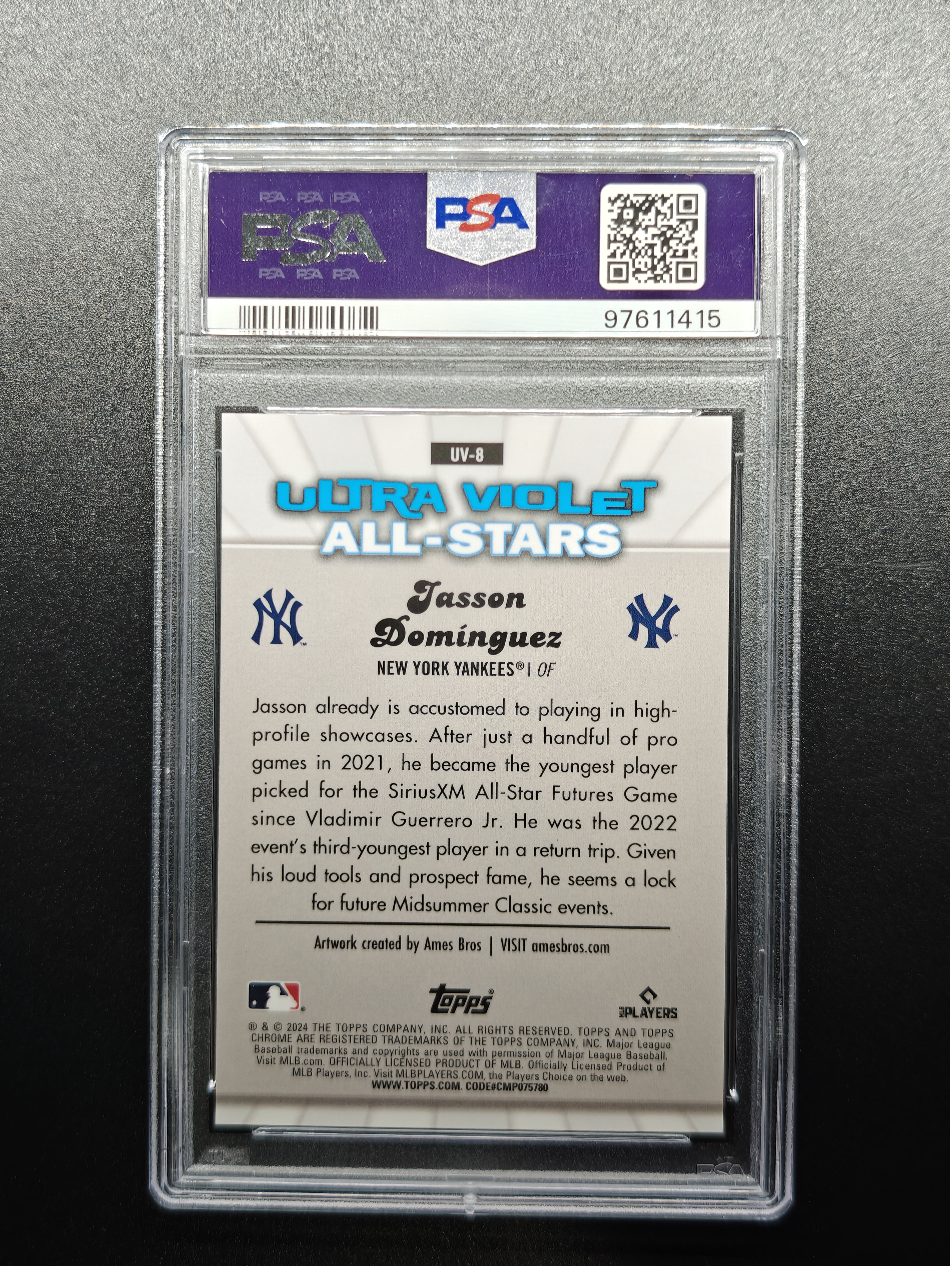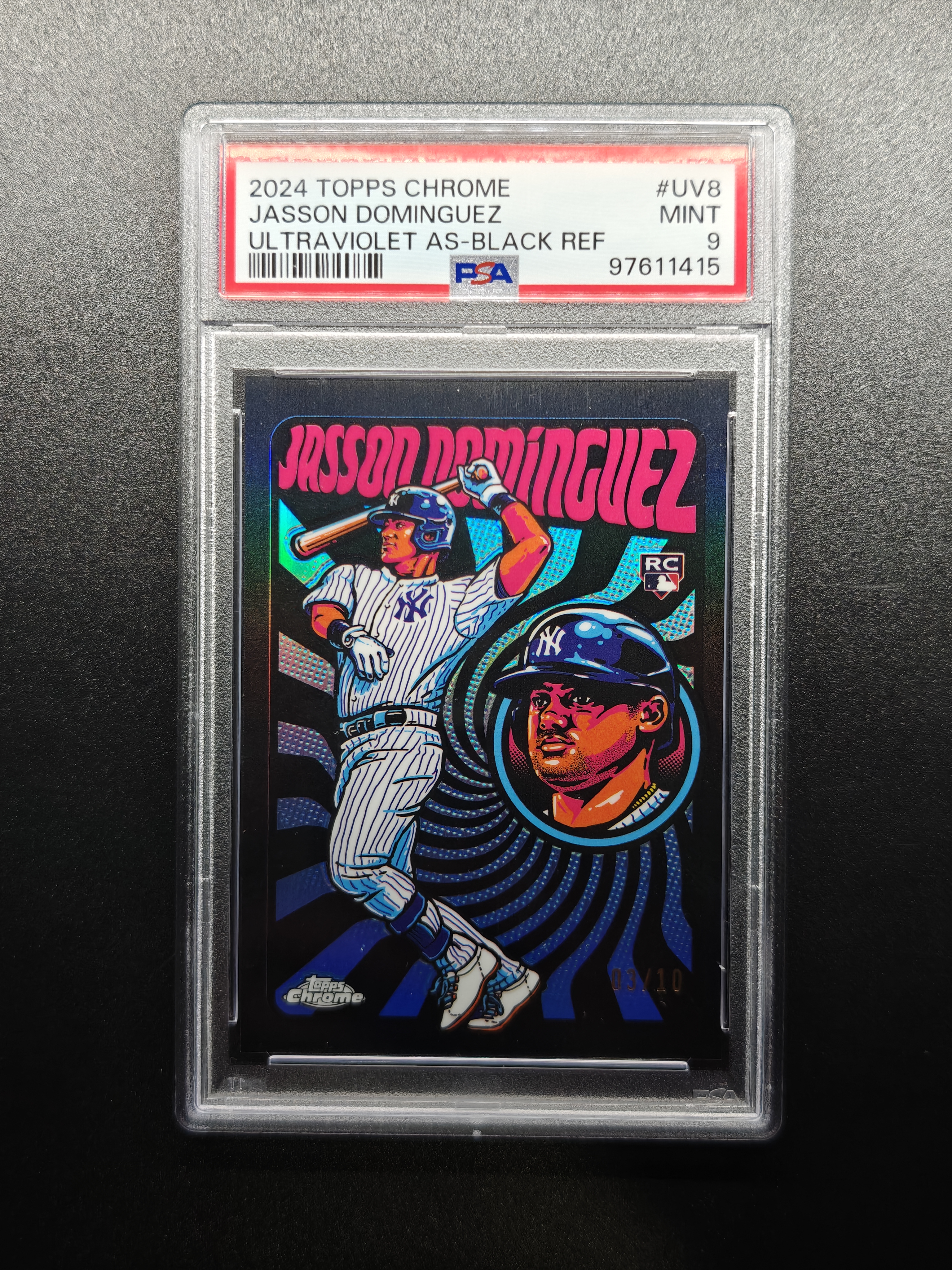 2024 Topps Chrome Jasson Dominguez RC 杰森 多明戈斯 03/10编 SSP中的超低编 黑折 Ultra Violet PSA9 本赛季已经10轰23盗 纽约扬基太子