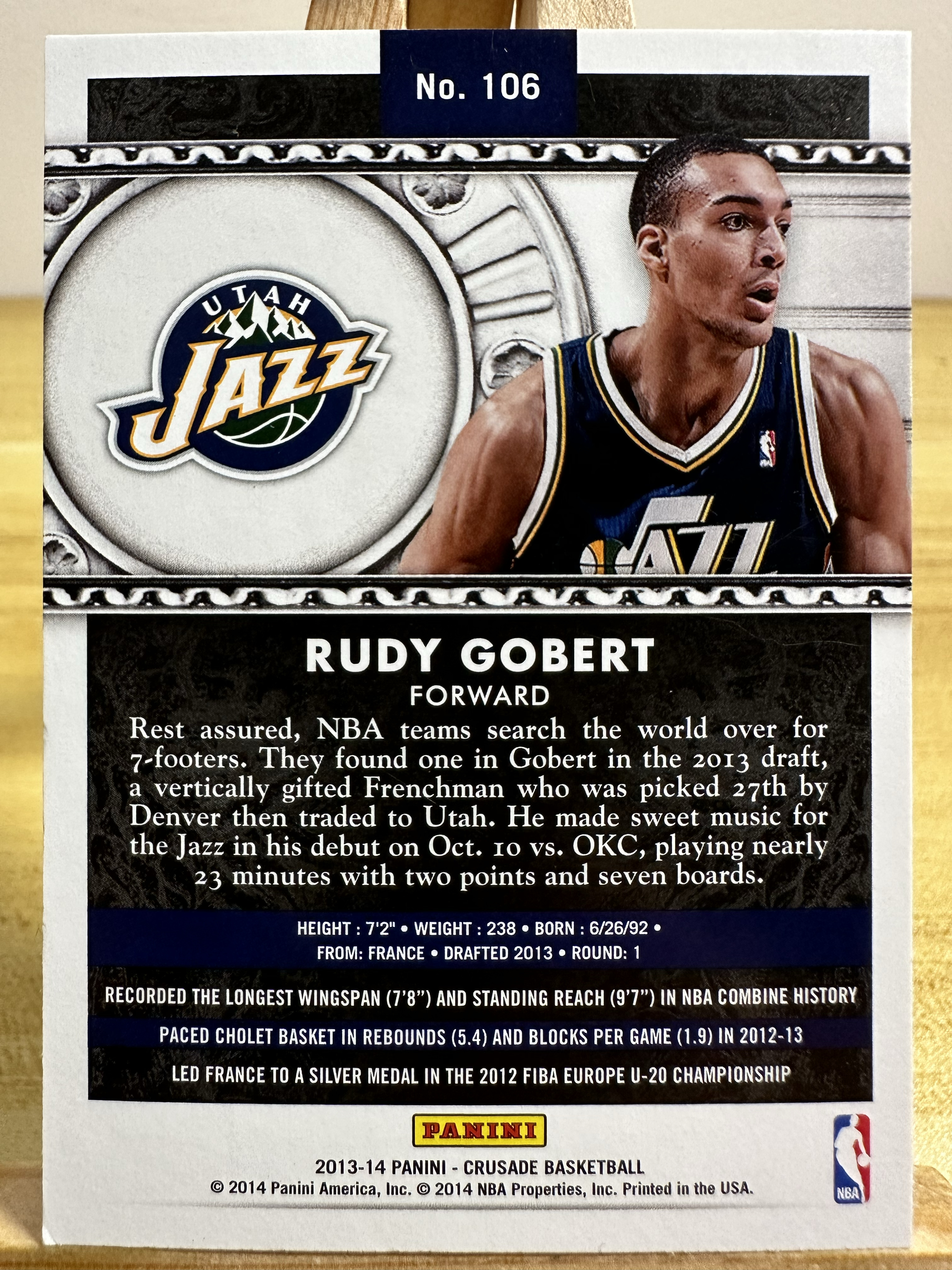 2013-14 Panini Crusade Rudy Gobert RC 新秀 爵士 鲁迪 戈贝尔 十字军 base 法棍 瑕疵如图 拍前请看描述 臻成免费代卖 c426