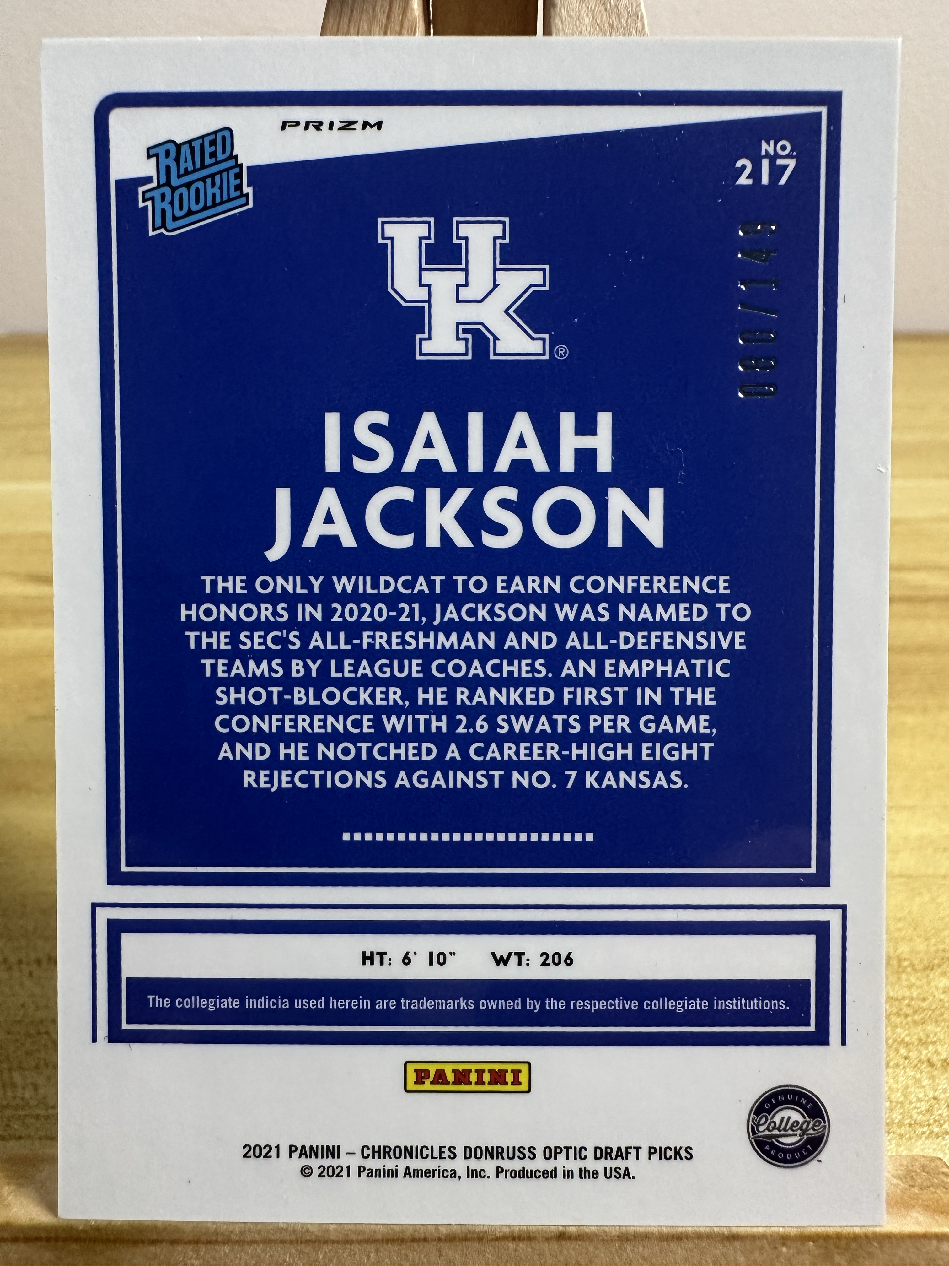 2021 Panini Chronicles Donruss Optic Draft Picks Isaiah Jackson RC 新秀 大学 以赛亚 杰克逊 pz 红折 80/149编 c365