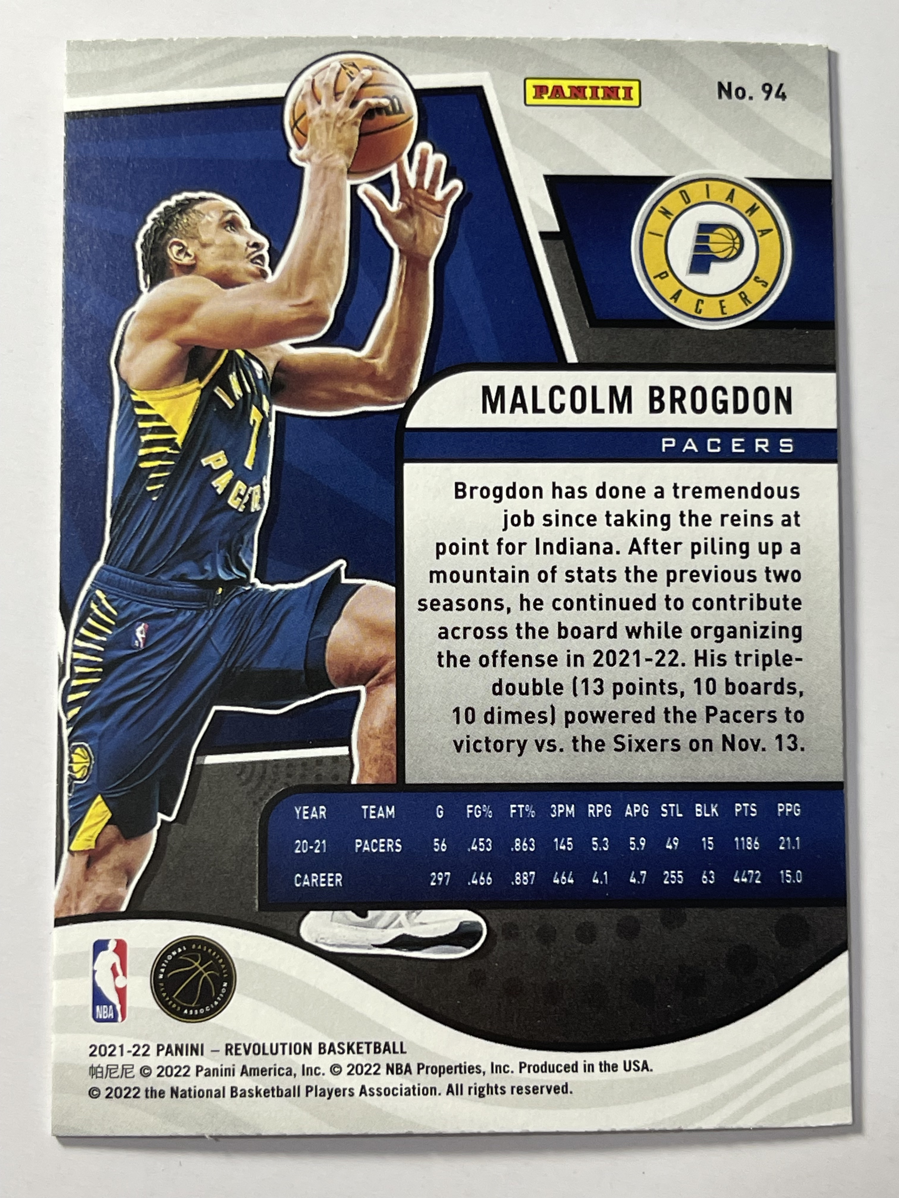 2021-22 Panini Revolution Malcolm Brogdon 马尔科姆 布罗格登 步行者队 折射卡 热门球星 收藏必备 凑套必备 实卡精美 #94