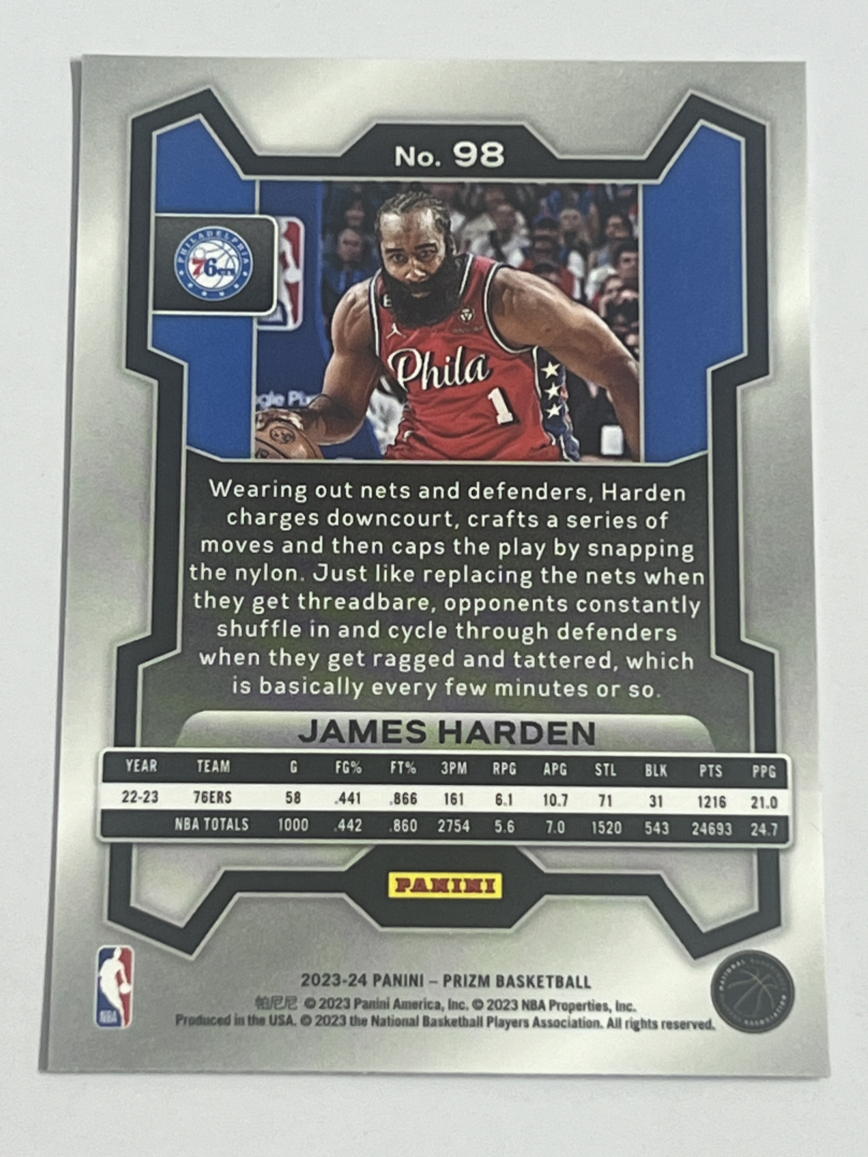 2023-24 Panini Prizm James Harden 詹姆斯 哈登 大胡子 76人队 热门球星 收藏必备 实卡精美 #98