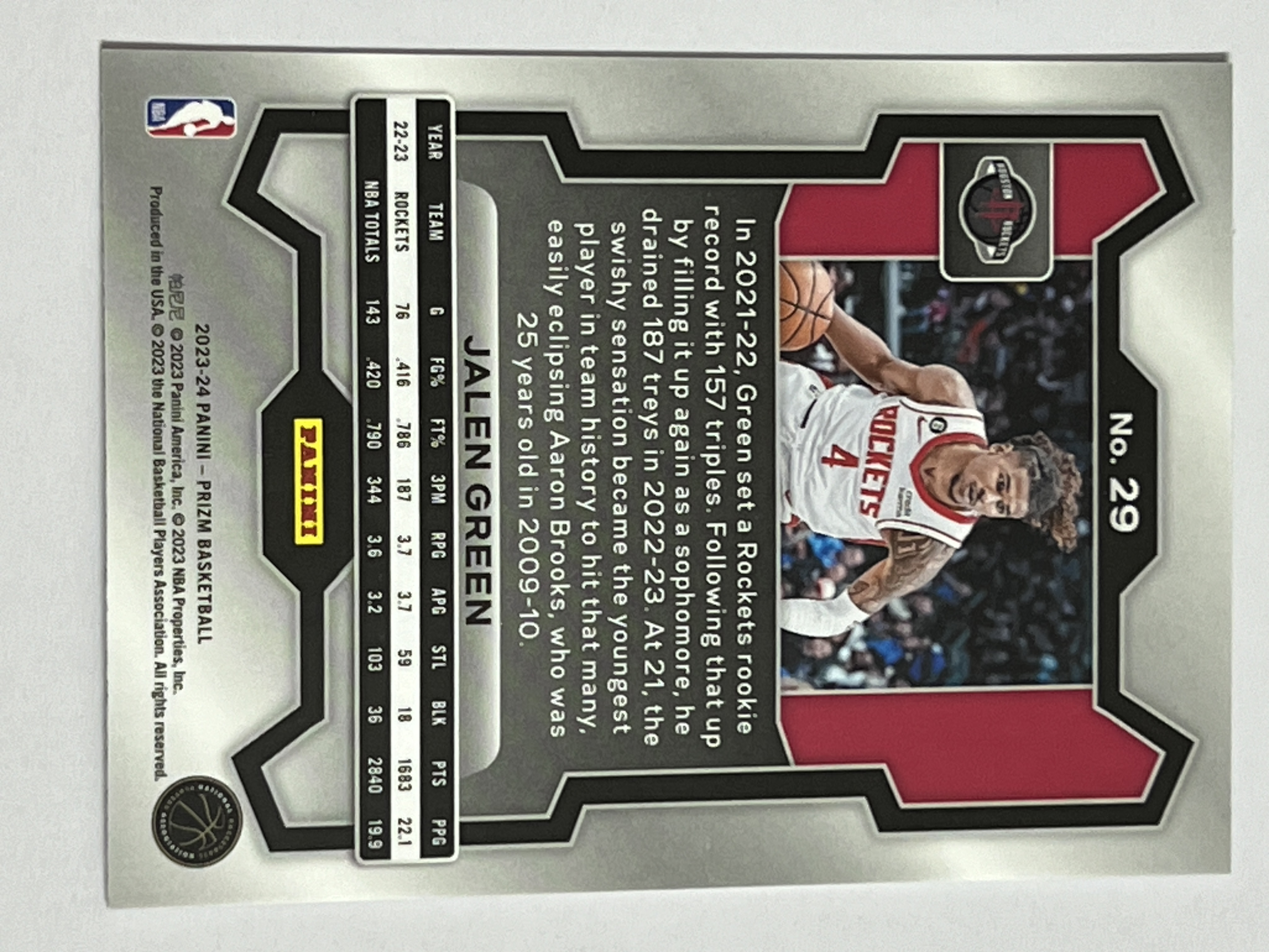 2023-24 Panini Prizm Jalen Green 杰伦 格林 火箭队 热门球星 收藏必备 实卡精美 #29