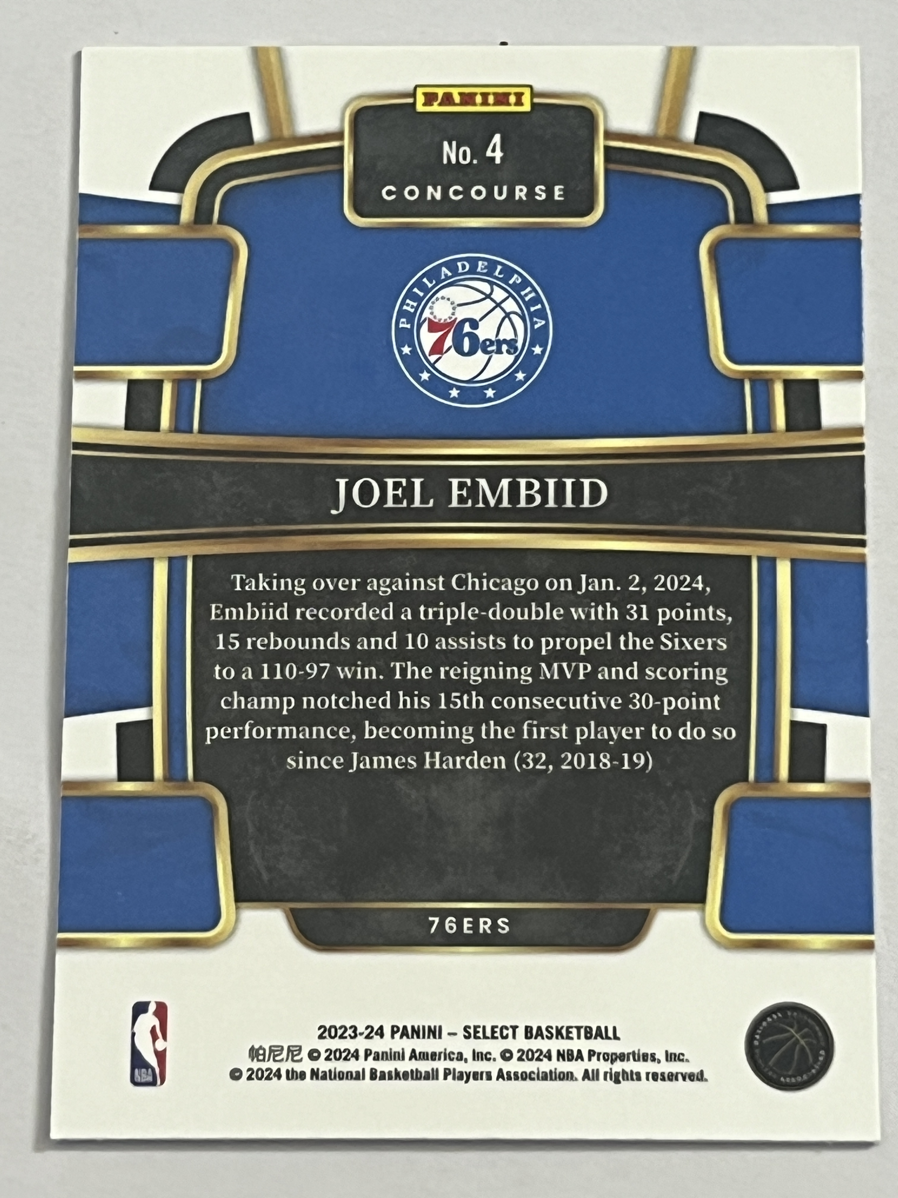 2023-24 Panini Select Joel Embiid 乔尔 恩比德 76人队 热门球星 收藏必备 实卡精美 #4